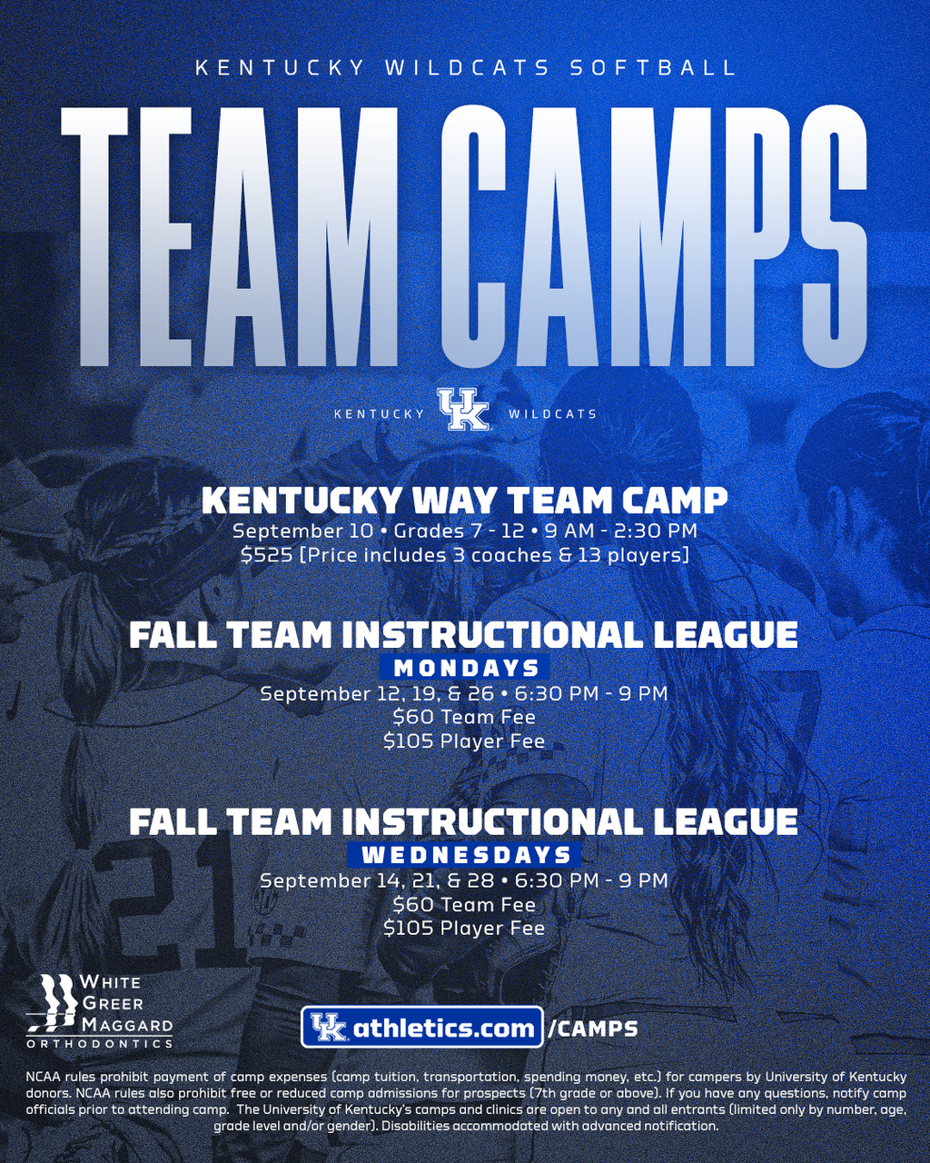 Please email uksoftballcamps@uky.edu if you have questions.