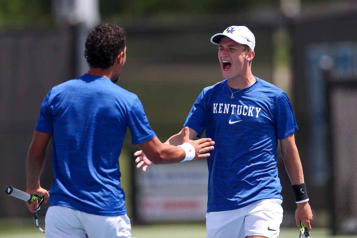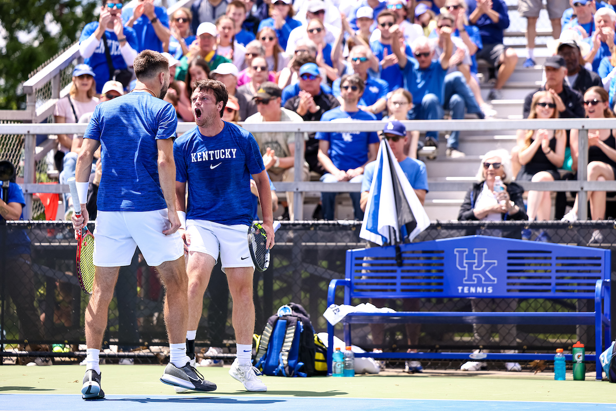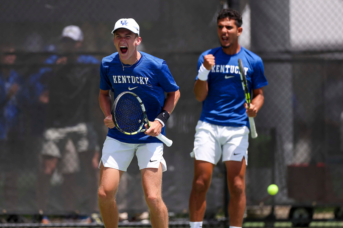 Taha Baadi, Jack Louitit. Kentucky defeats Harvard 4-2 and advances to the elite 8. Photo by Matthew Mueller | UK Athletics