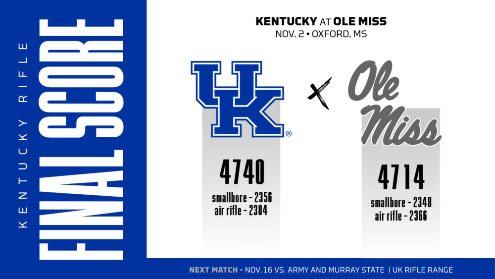 LEXINGTON, Ky. – Behind the fifth-highest smallbore team score in the nation – and the best this season for the Wildcats – the No. 4 University of Kentucky rifle team continued its impressive start to the 2024-25 season with a 4740-4714 victory at No. 11 Ole Miss on Saturday in Oxford, Mississippi.