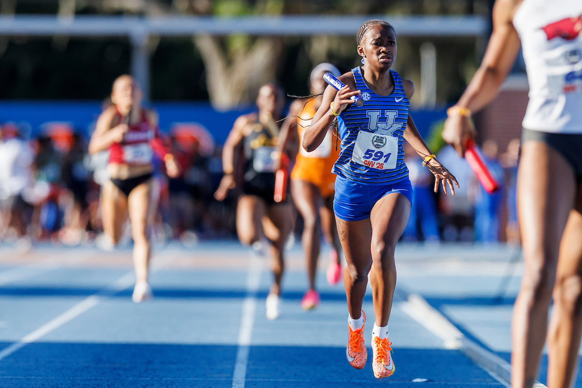 Annie Murphy, Keaton Daniel, and Kris Grimes. Kentucky Track & Field at the Tom Jones Invitational. Photo by Caleb Bowlin | UK Athletics