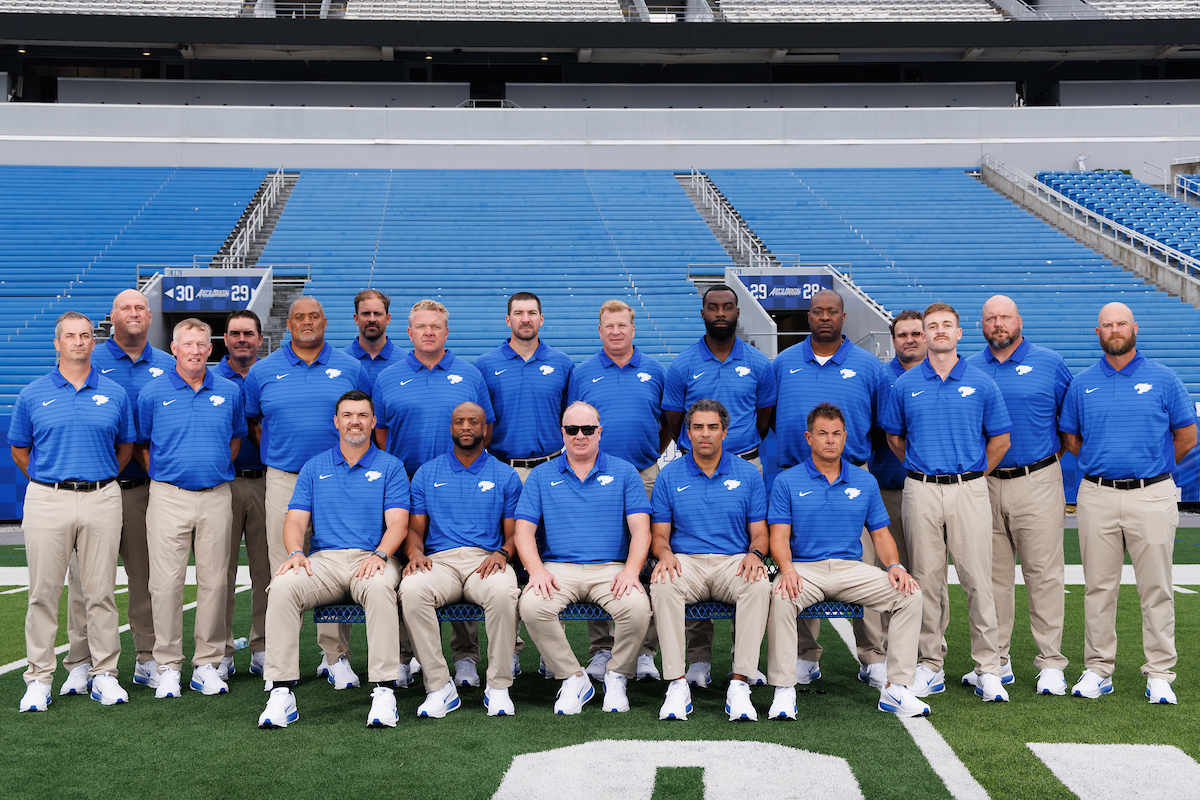 Coaching Staff. Anwar Stewart. Eric Wolford. Derek Shay. Mike Stoops. L’Damian Washington. Jay Boulware. Brad White. Chris Collins. Mark Stoops. Bush Hamdan. Frank Buffano. Kentucky football Media Day. Elliott Hess | UK Athletics
