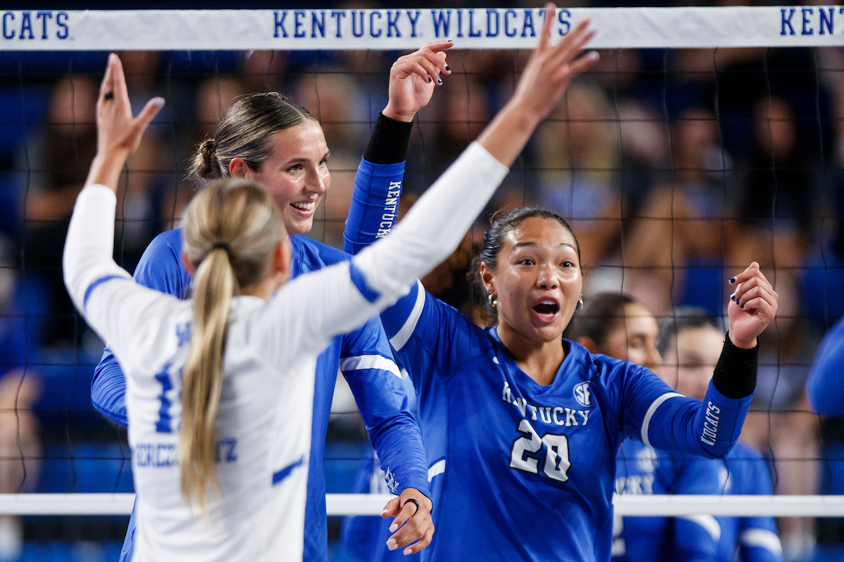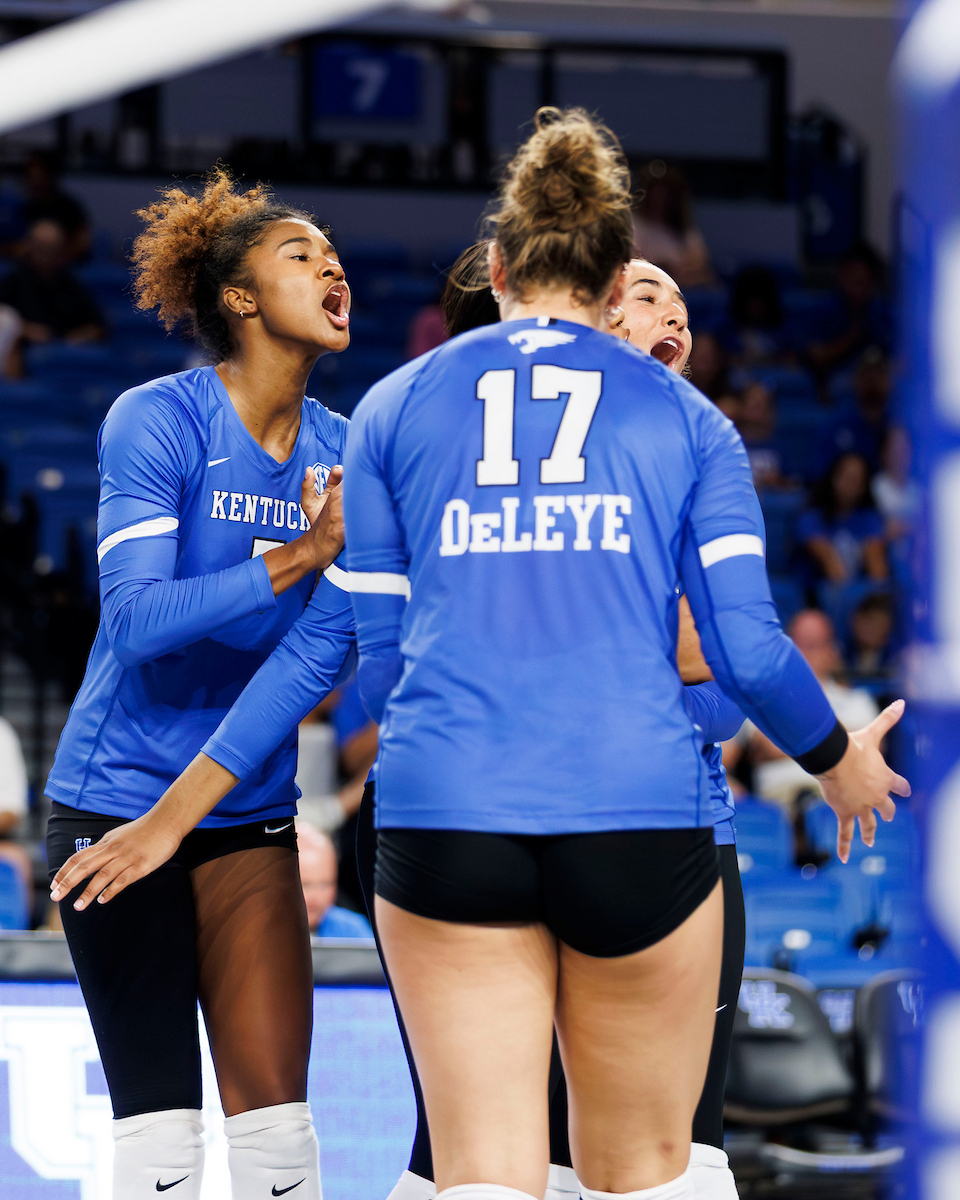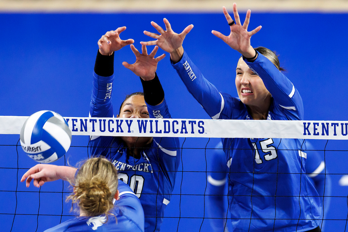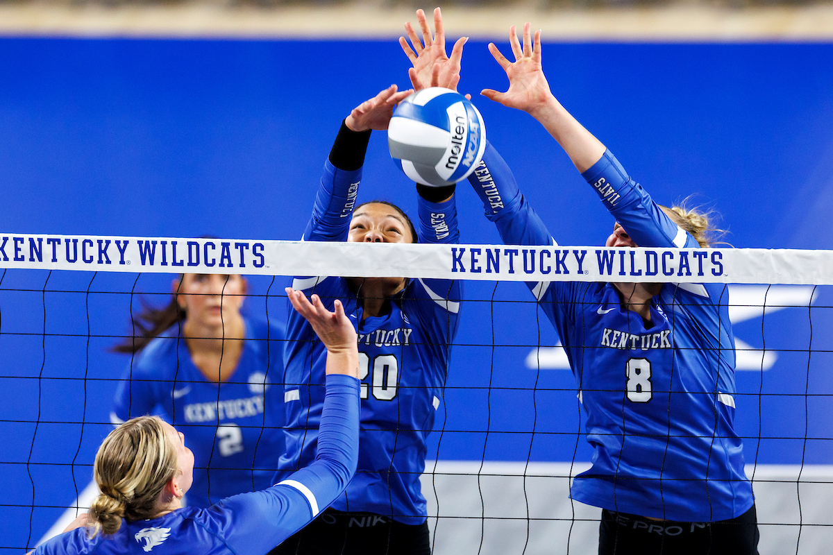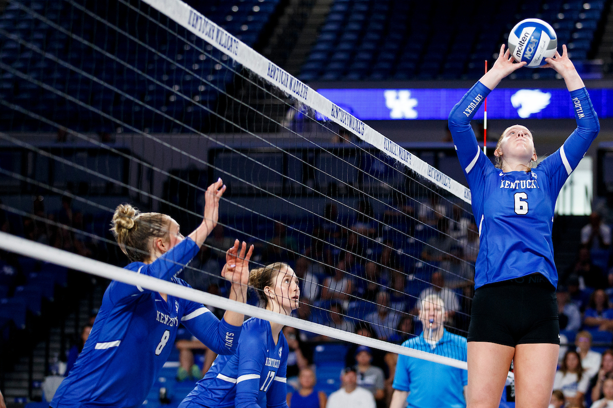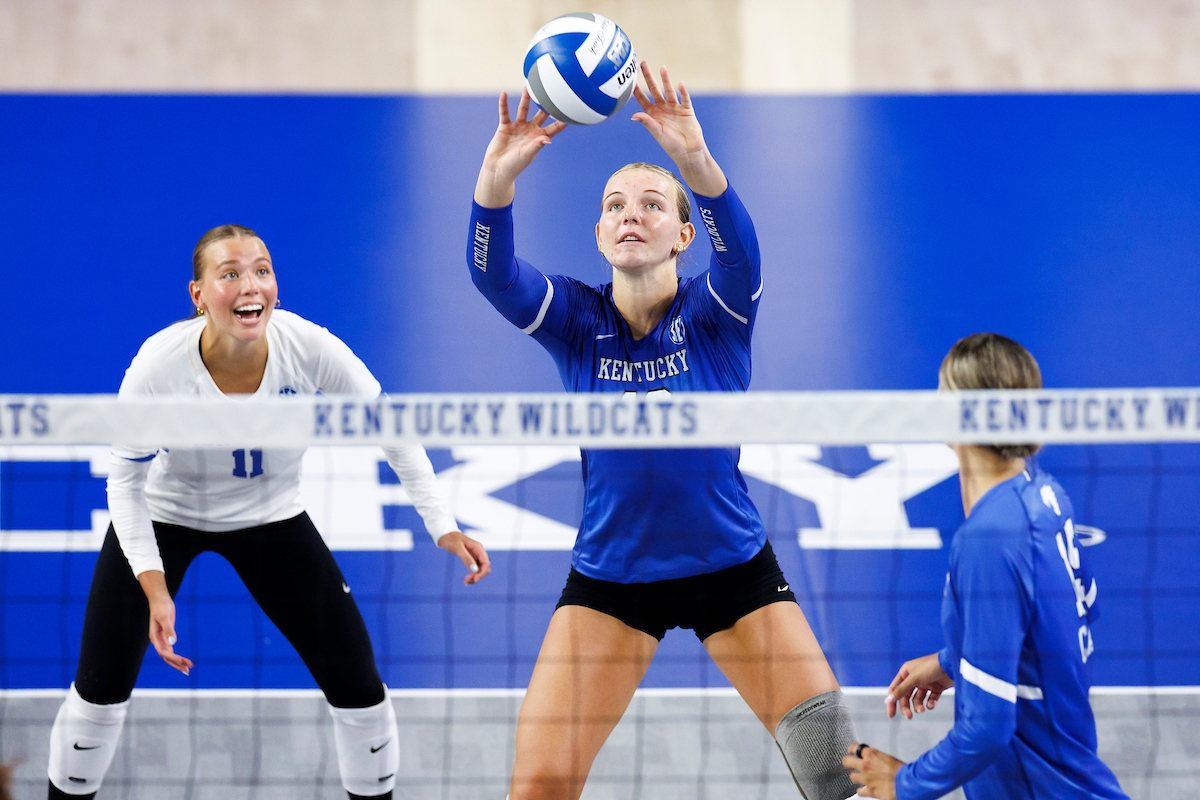 Lizzie Carr. Brooklyn DeLeye. Eva Hudson. Kentucky Volleyball Blue White Game. Photo By: Grace Smith | UK Athletics