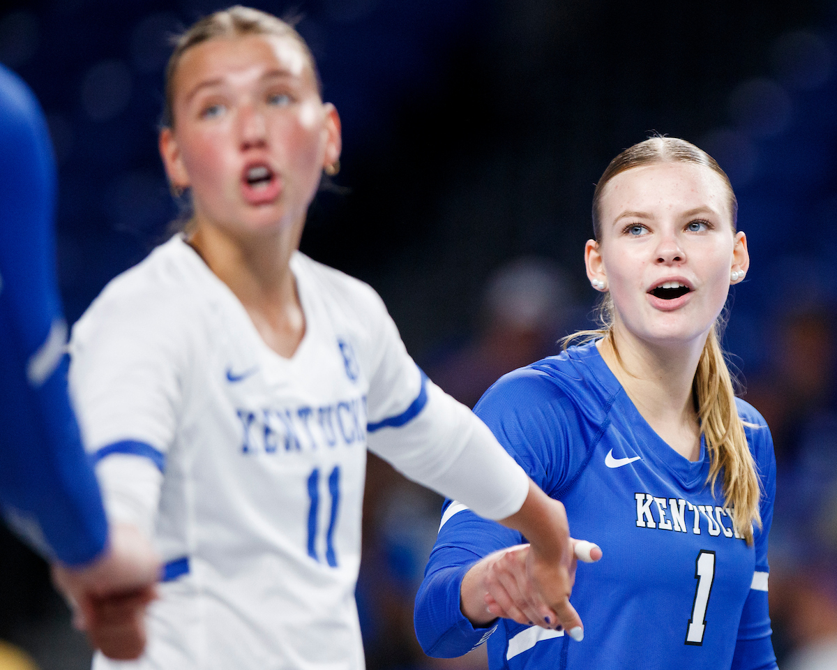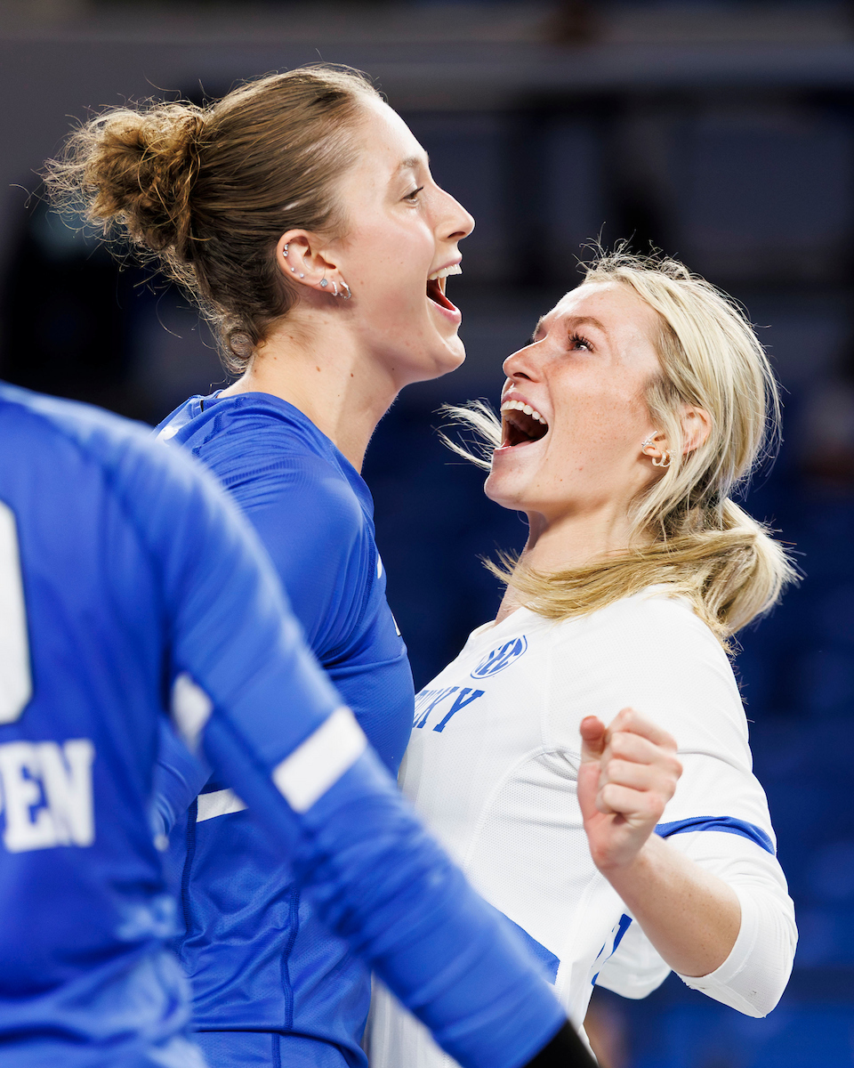Asia Thigpen and Lizzie Carr. Kentucky Volleyball Blue White Game. Photo by Caleb Bowlin | UK Athletics