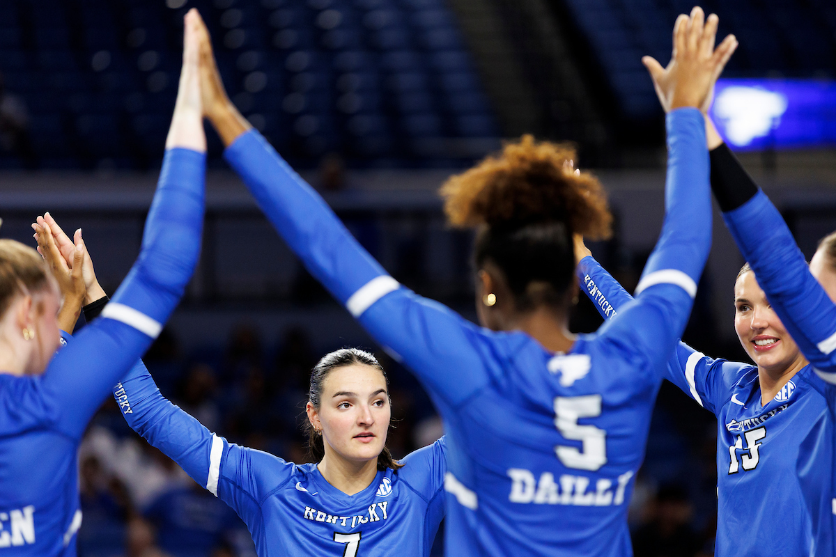 Team. Brooke Bultema. Ava Sarafa. Hannah Benjamin. Asia Thigpen. Kentucky Volleyball Blue White Game. Photo By: Grace Smith | UK Athletics