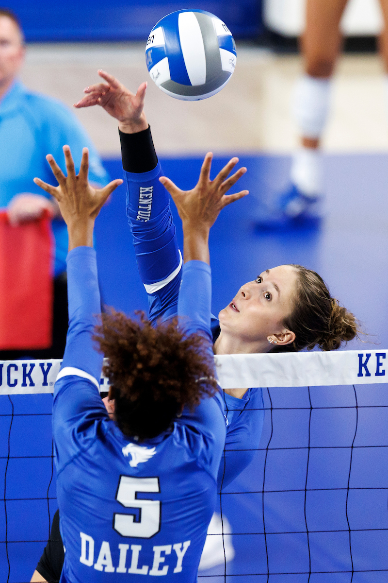 Brooklyn DeLeye. Jordyn Dailey. Kentucky Volleyball Blue White Game. Photo By: Grace Smith | UK Athletics