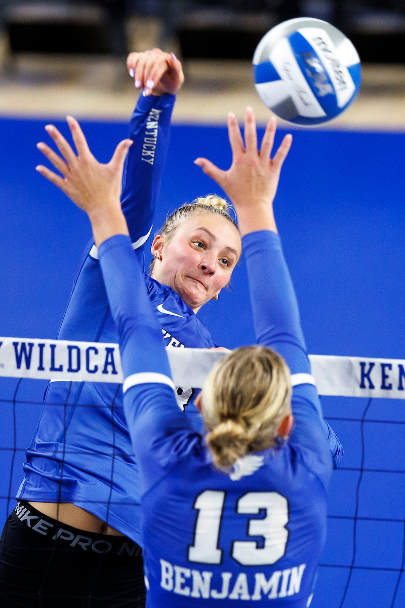 Brooklyn DeLeye. Molly Tuozzo. Kentucky Volleyball Blue White Game. Photo By: Grace Smith | UK Athletics
