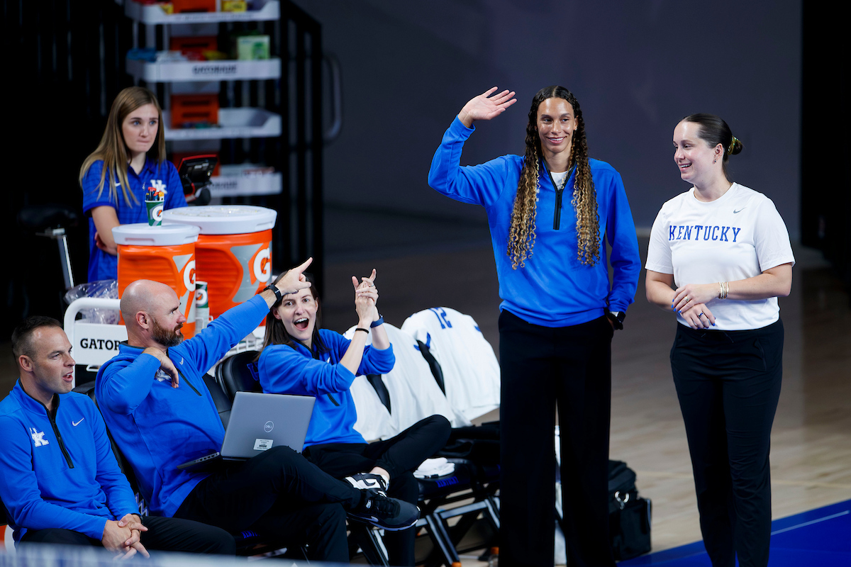 Amaya Tillman and Craig Skinner. Kentucky Volleyball Blue White Game. Photo by Caleb Bowlin | UK Athletics