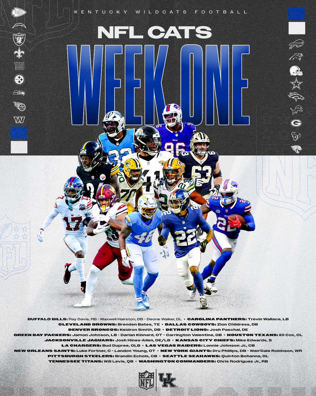 The full list of Kentucky Wildcats on NFL Week One rosters is below.