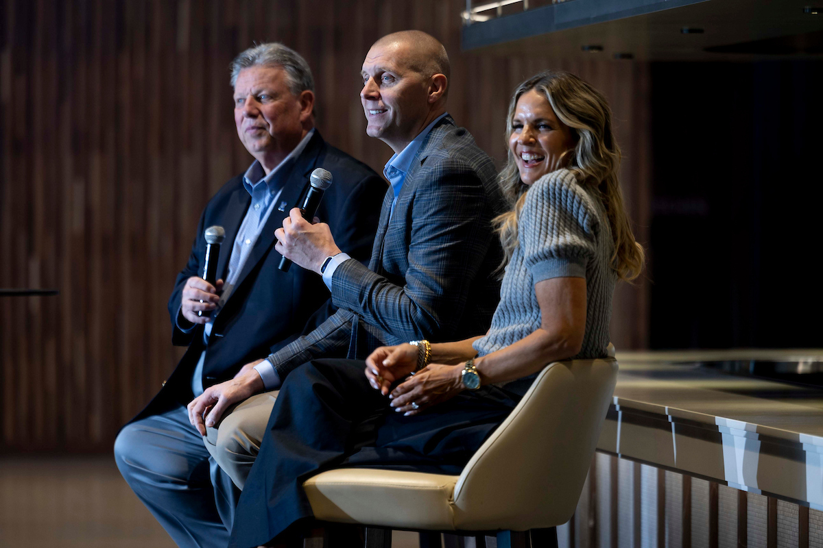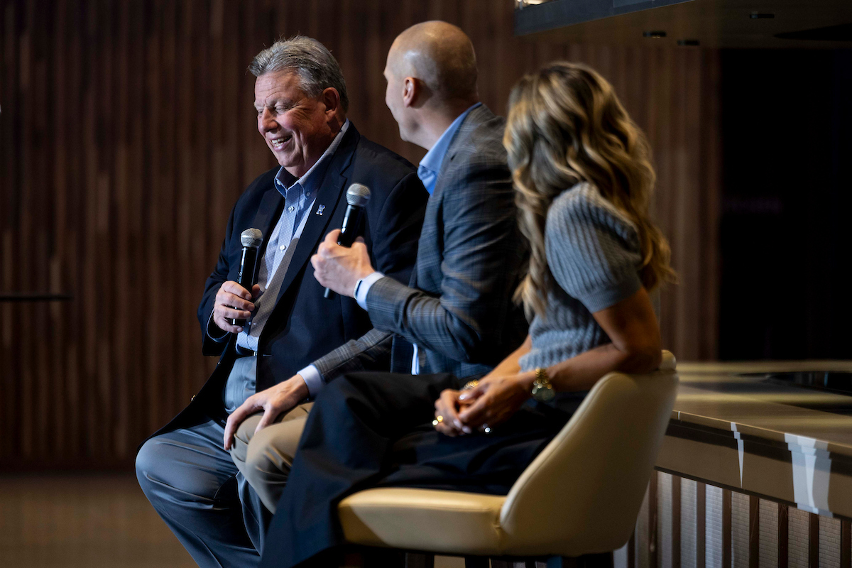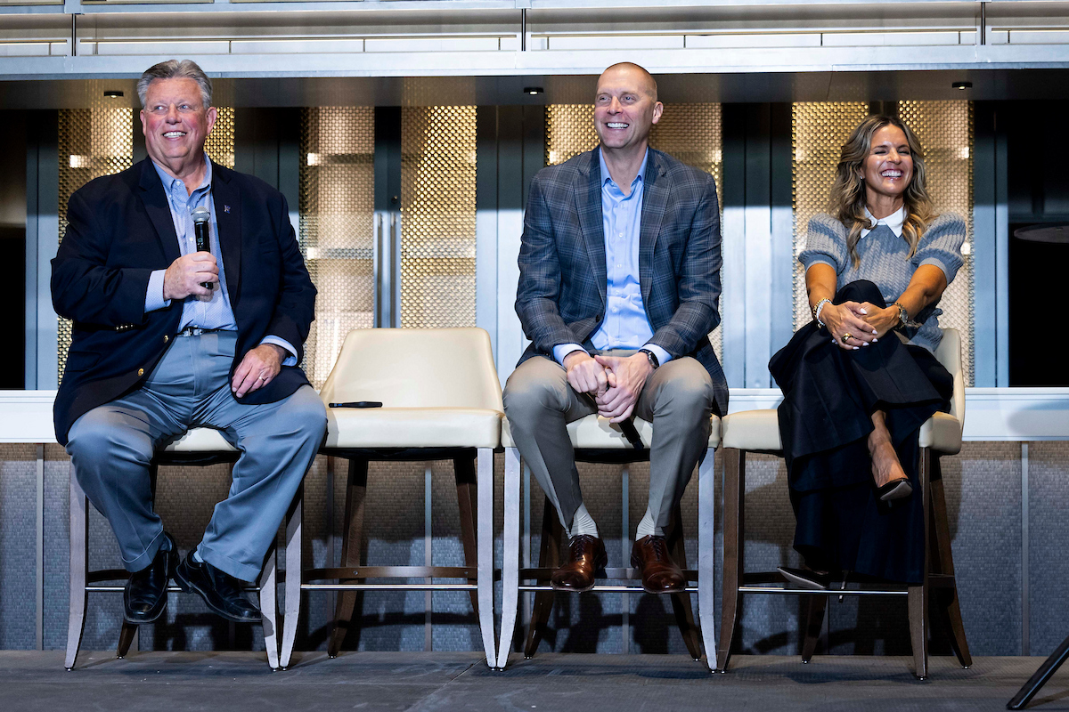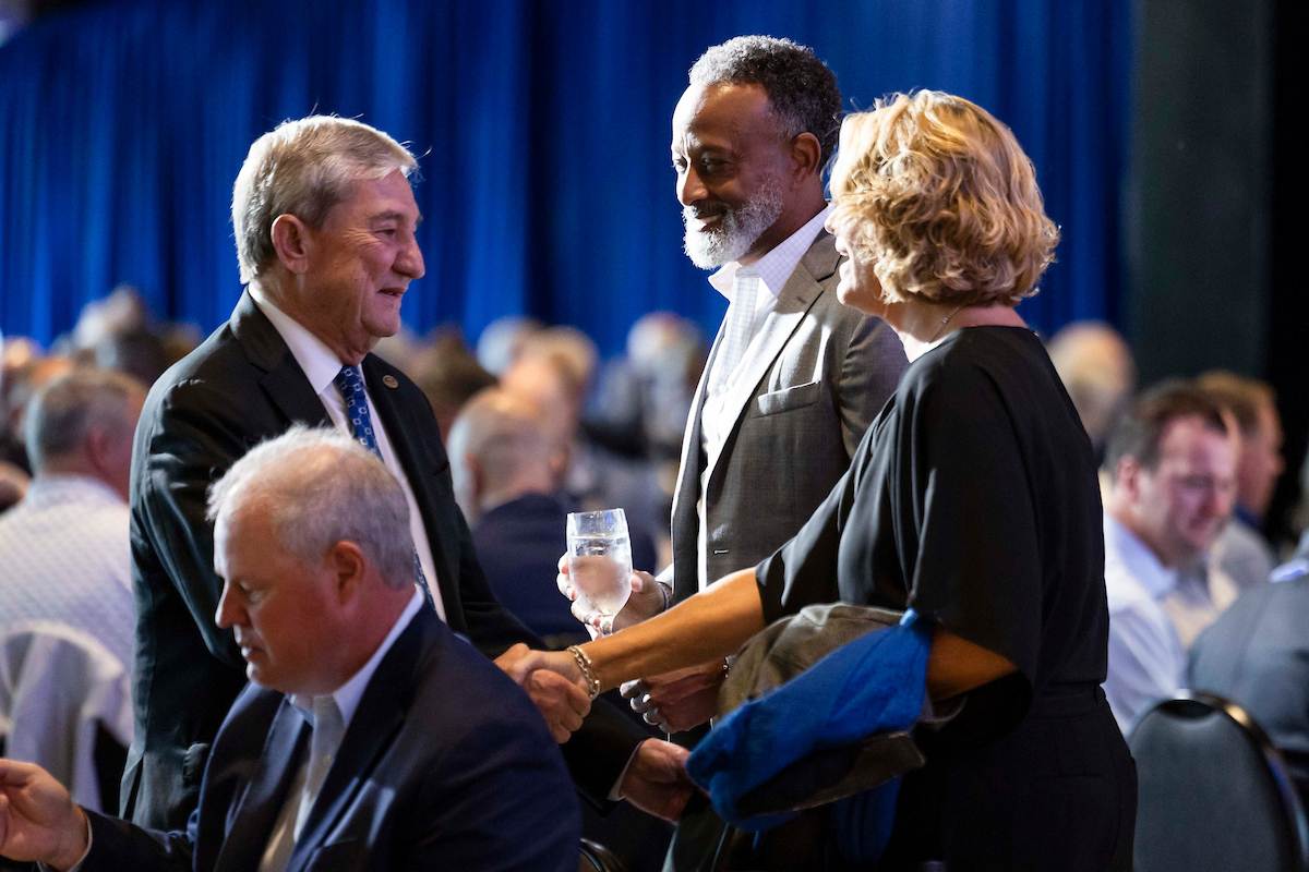 Mark Pope. Lee Anne Pope. Tom Leach. 2025 Greater Louisville UK Alumni Club Wildcat Tipoff Luncheon. Photo by Chet White | UK Athletics