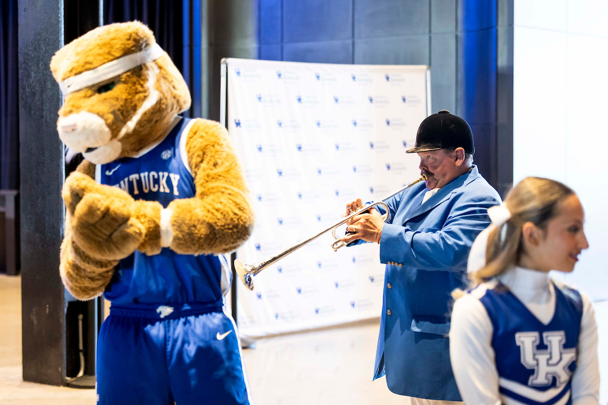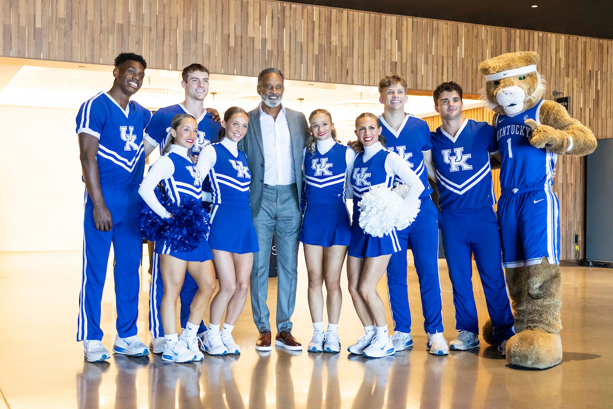 Kenny Brooks. Cheerleaders. Wildcat. 2025 Greater Louisville UK Alumni Club Wildcat Tipoff Luncheon. Photo by Chet White | UK Athletics