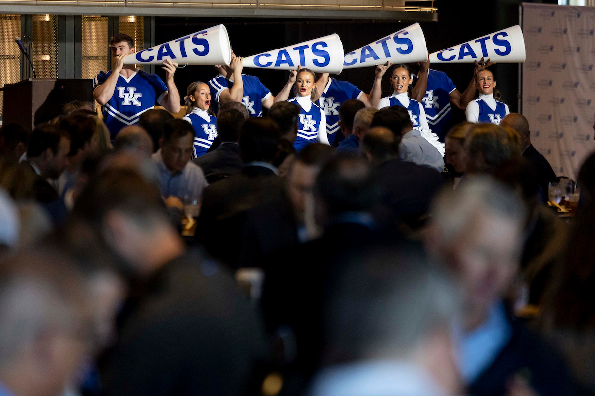 Wildcat. Cheerleaders. Steve Buttleman. 2025 Greater Louisville UK Alumni Club Wildcat Tipoff Luncheon. Photo by Chet White | UK Athletics