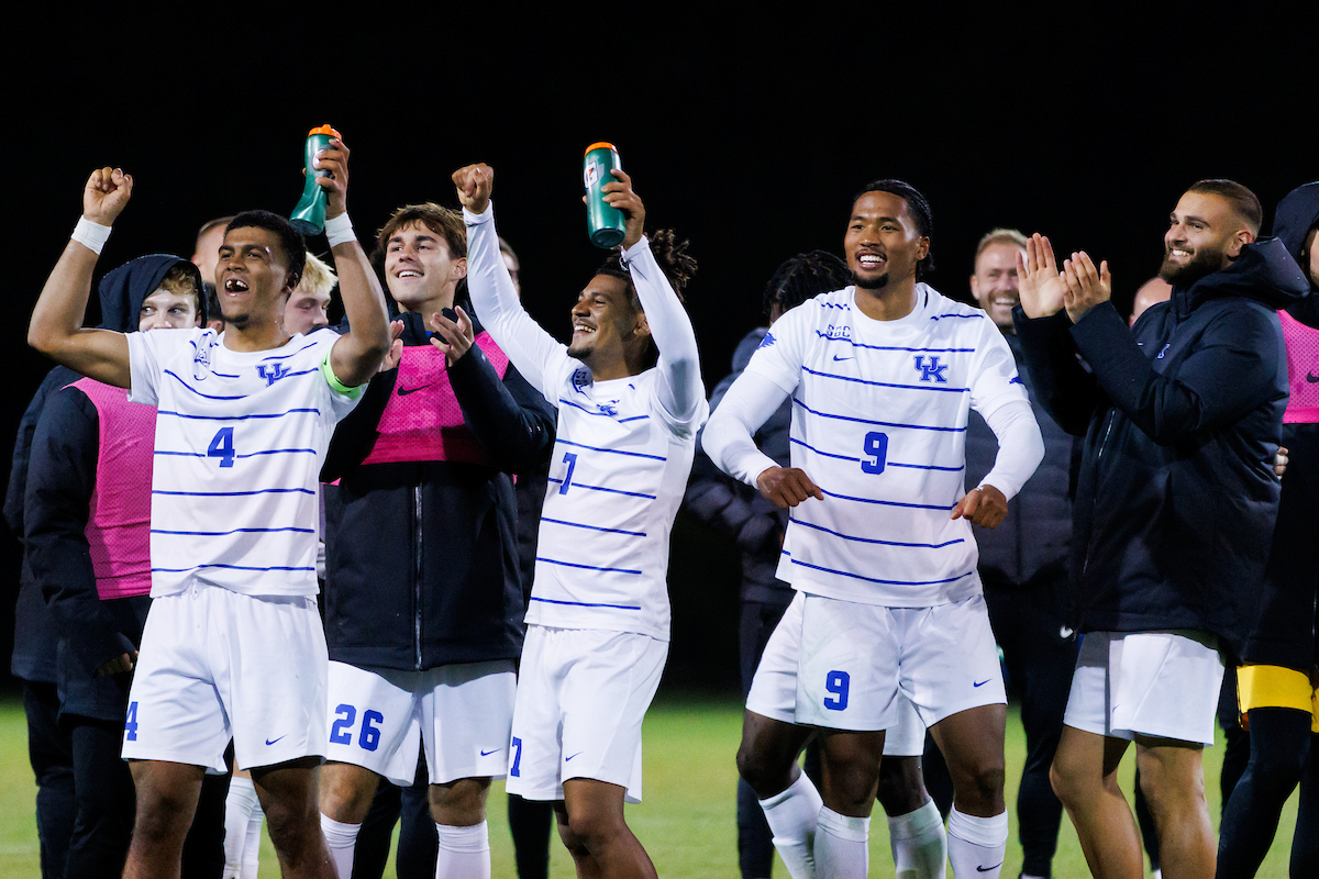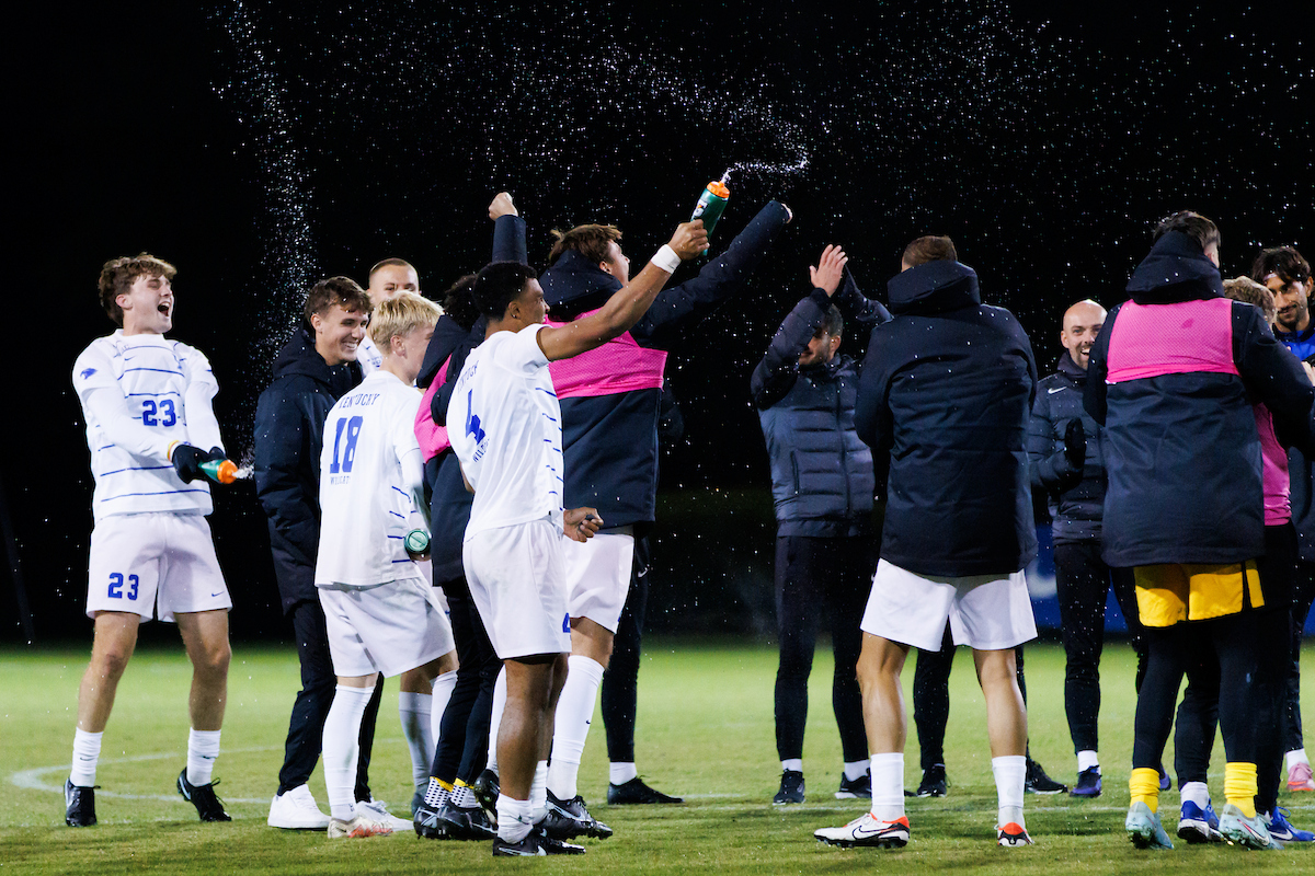 Celebration. Marqes Muir. Eric Onos. Isaiah Chisolm. Kentucky defeats Georgia State 1-0. Photo by Kateri Sherman | UK Athletics
