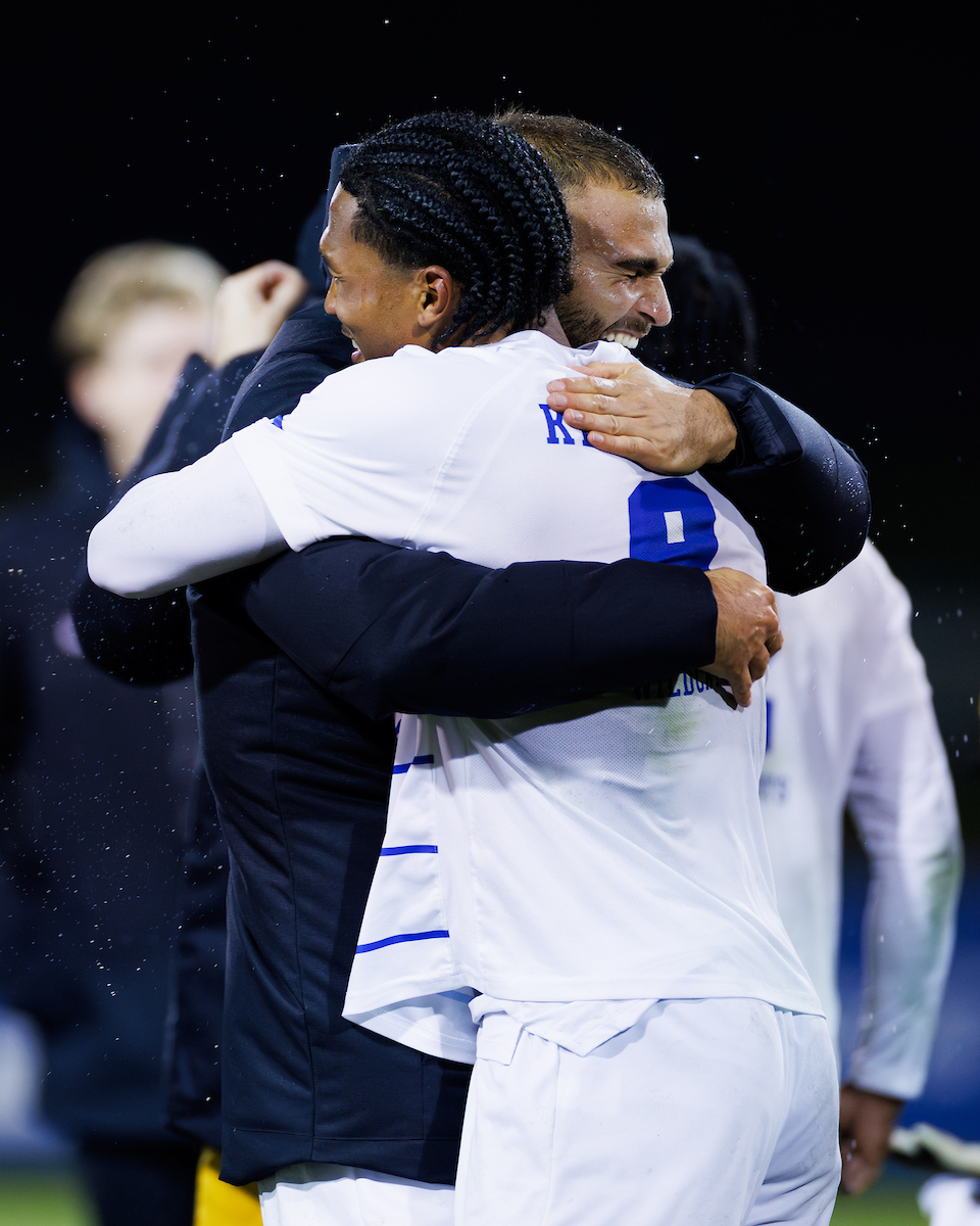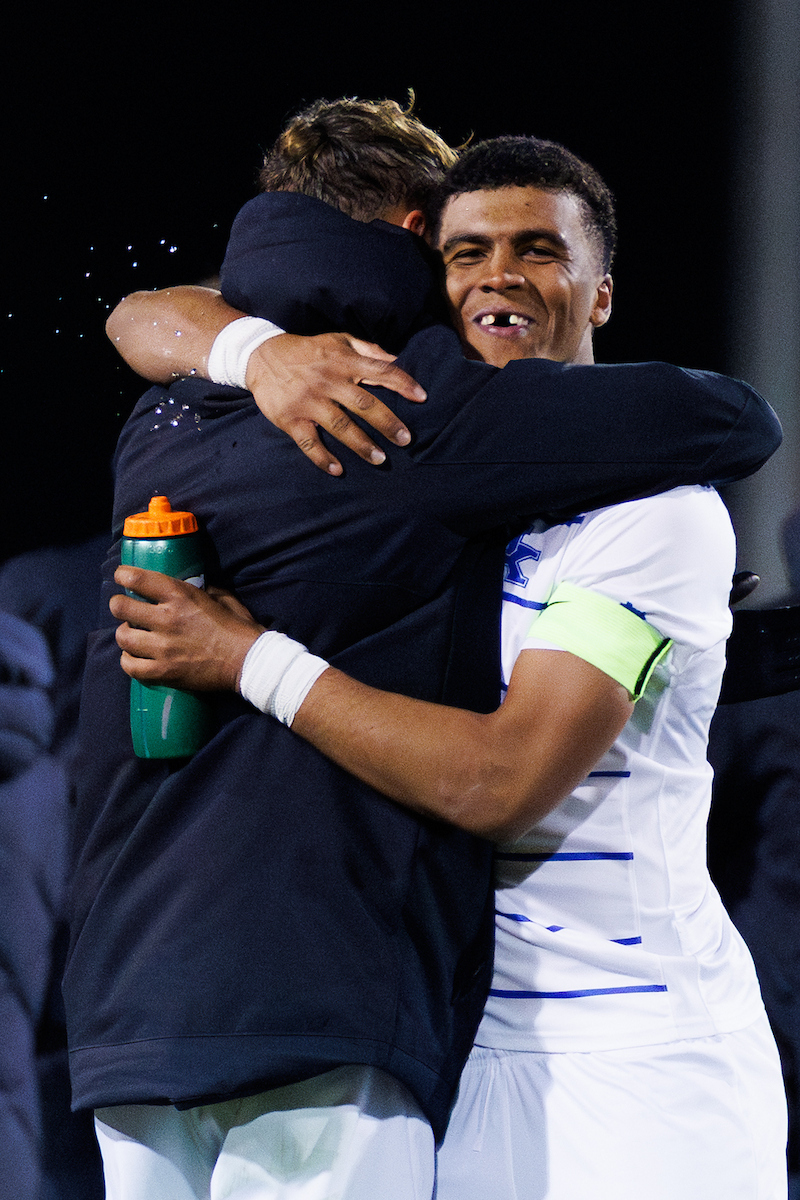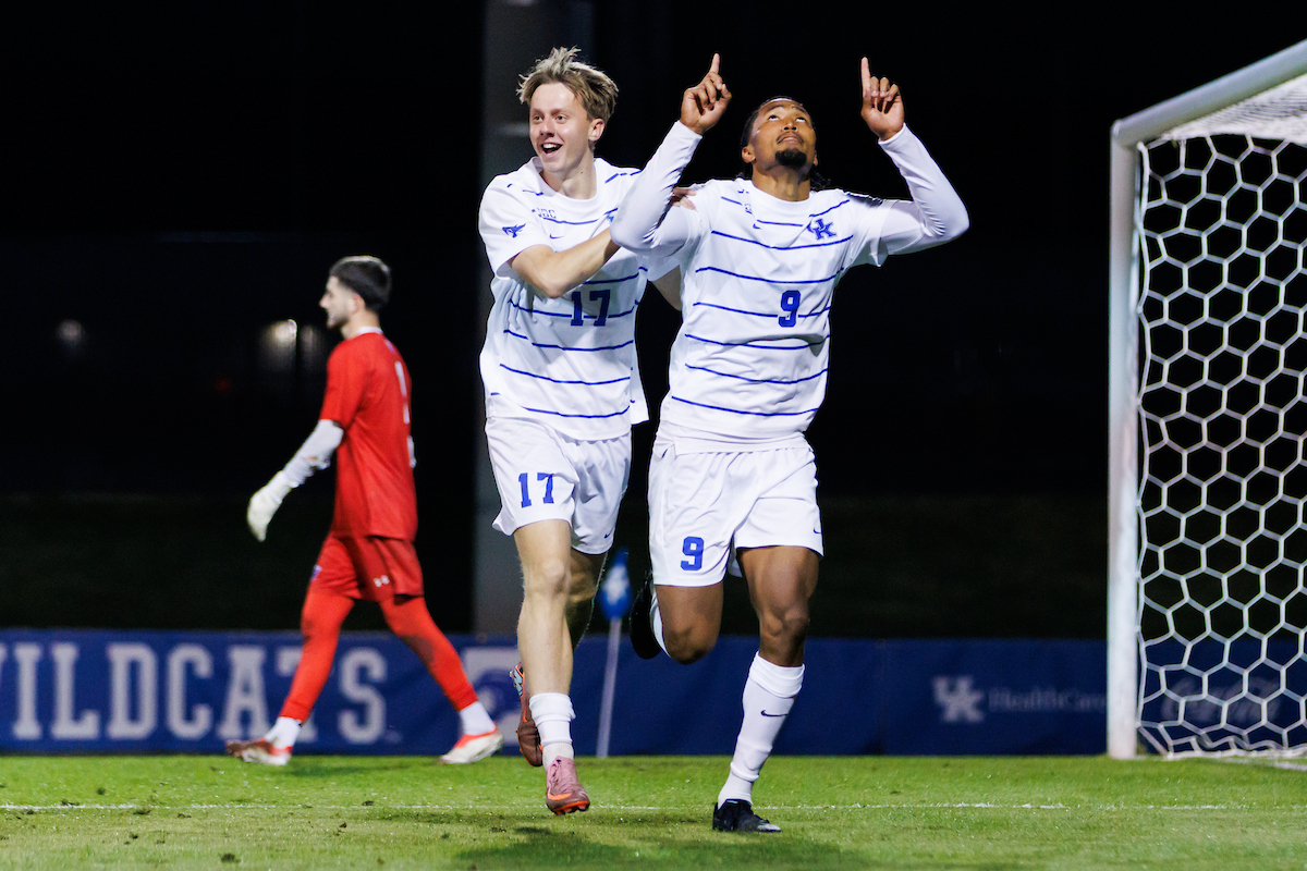 Celebration. Isaiah Chisolm. Bertil Alban. Kentucky defeats Georgia State 1-0. Photo by Kateri Sherman | UK Athletics