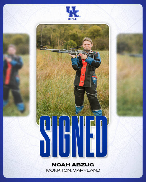 An impressive junior shooter from Monkton, Maryland, Abzug will join the Wildcats with a strong list of accomplishments. Recently, he finished 26th in smallbore at the 2025 Rifle and Pistol Junior Olympic Championships, which had a stacked competitors list with current UK stars Braden Peiser and Sam Adkins finishing in the top 10. At the 2023 NRA National Junior Sectional, he finished tied for 20th in the intermediate junior category in air rifle. Earlier this year he was one of 29 youth shooters in the nation invited to the America Legion’s Junior 3-Position Air Rifle National Championship. Abzug competes for the Seitzland Rifle Club.