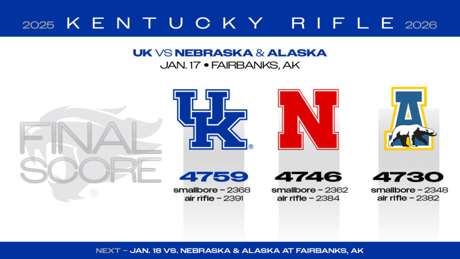 LEXINGTON, Ky. – The University of Kentucky rifle team started its 2026 season off in a massive way Saturday, setting school records in smallbore and aggregate team scores en route to an impressive victory over Nebraska and Alaska at the Tanana Valley Sportsman’s Association range in Fairbanks, Alaska.
