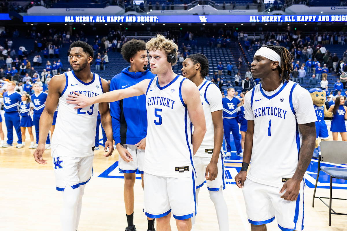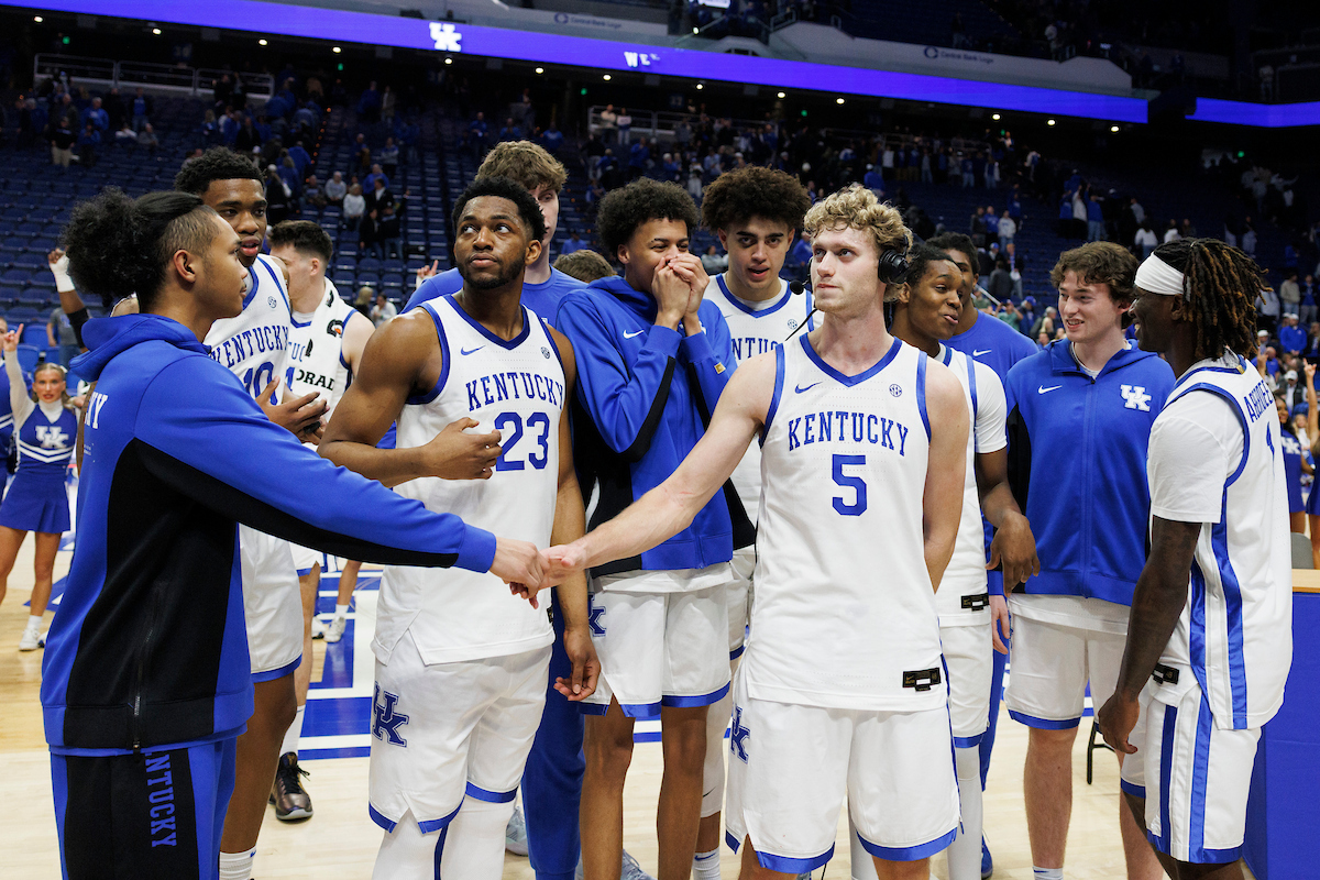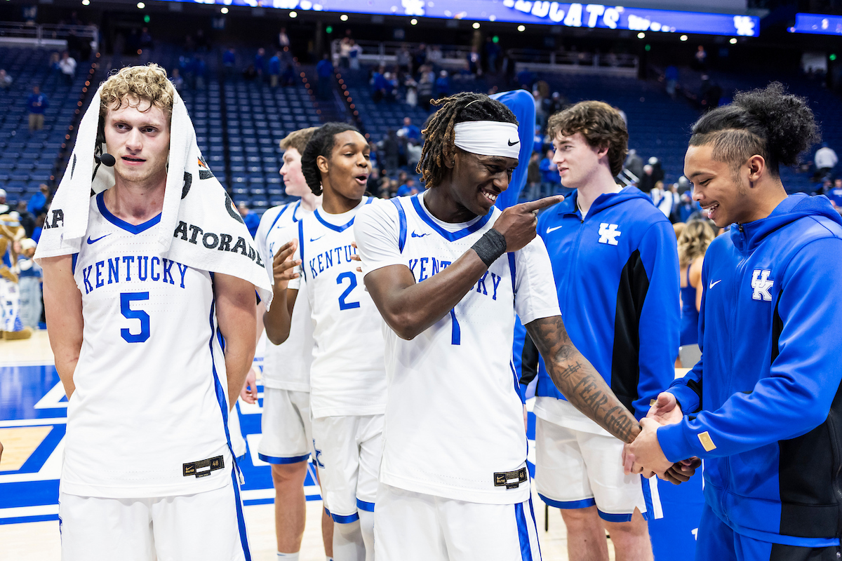 Malachi Moreno. Collin Chandler. Mouhamed Dioubate. Denzel Aberdeen. Trent Noah. Walker Horn. Jaland Lowe. Reece Potter. Jasper Johnson. Braydon Hawthorne. Jayden Quaintance. Braydon Hawthorne. Zach Tow. Otega Oweh. Brandon Garrison. Andrija Jelavic. Kentucky beat Texas 85-80. Photo by Chet White | UK Athletics
