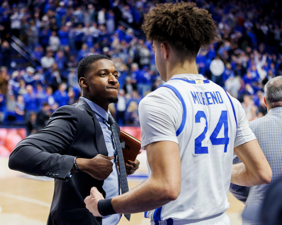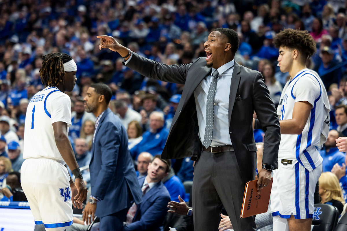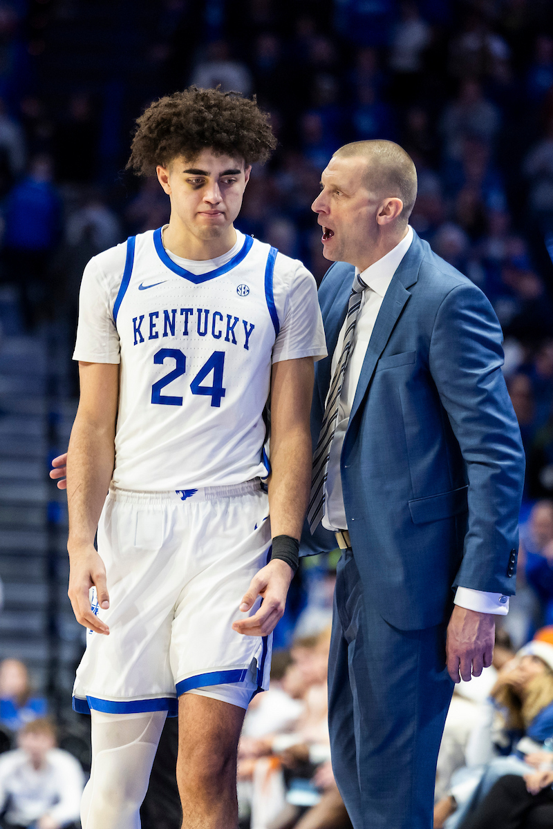 Malachi Moreno. Mark Pope. Kentucky beat Texas 85-80. Photo by Chet White | UK Athletics