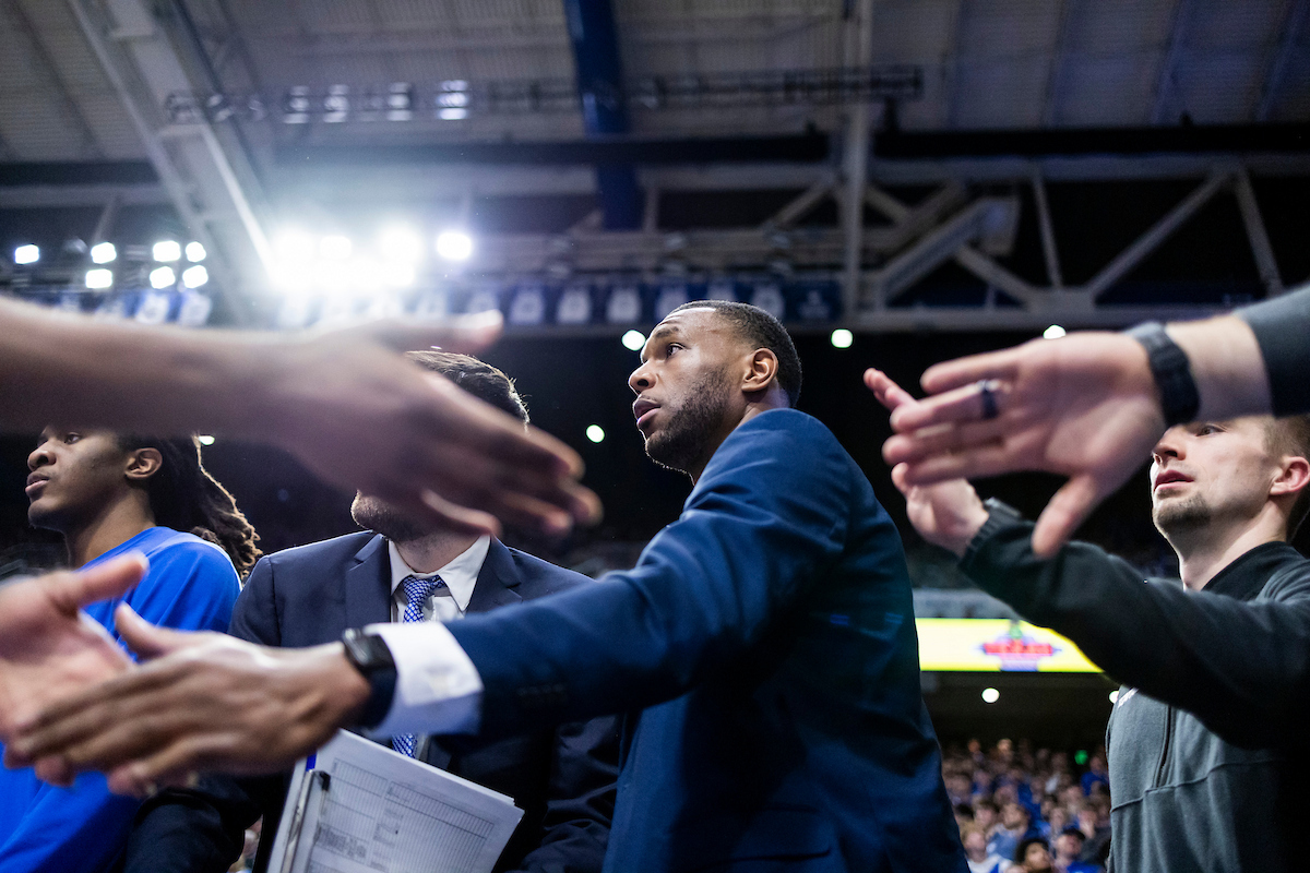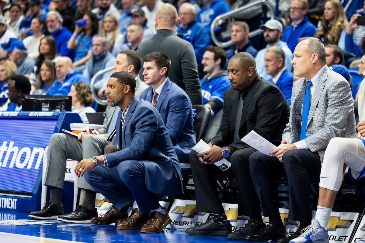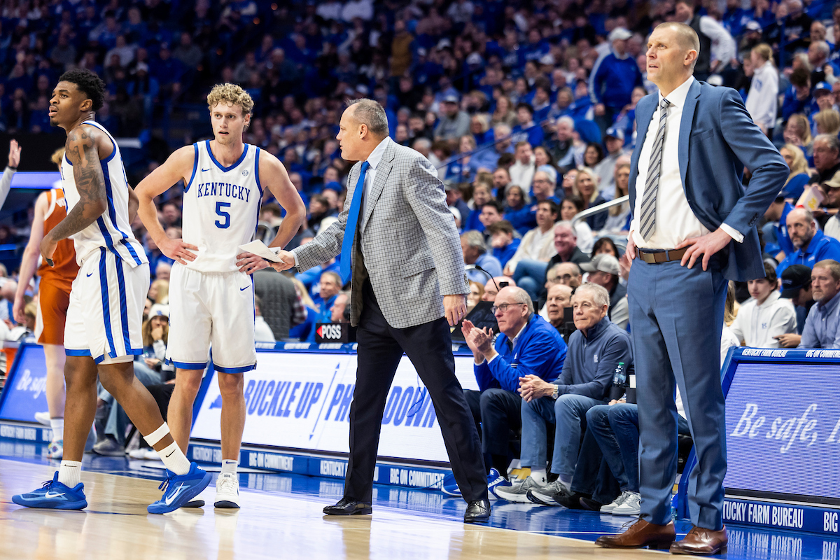 Otega Oweh. Collin Chandler. Mark Fox. Mark Pope. Kentucky beat Texas 85-80. Photo by Chet White | UK Athletics