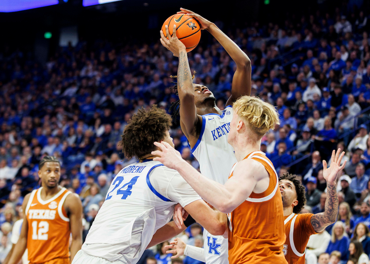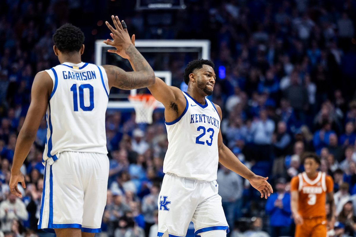 Andrija Jelavic. Otega Oweh. Malachi Moreno. Kentucky beat Texas 85-80. Photo by Chet White | UK Athletics