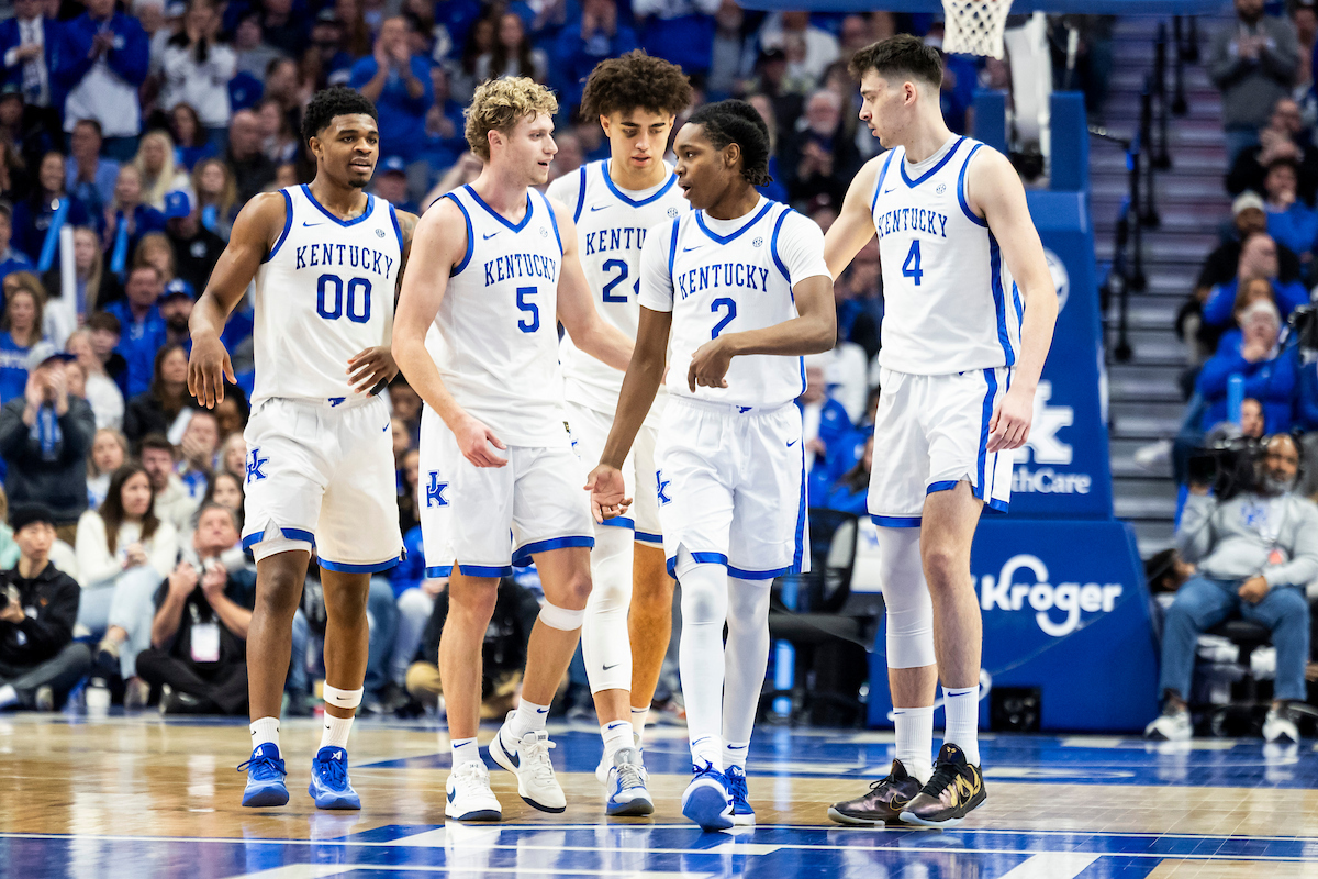 Collin Chandler. Mouhamed Dioubate. Braydon Hawthorne. Jasper Johnson. Denzel Aberdeen. Kentucky beat Texas 85-80. Photo by Chet White | UK Athletics