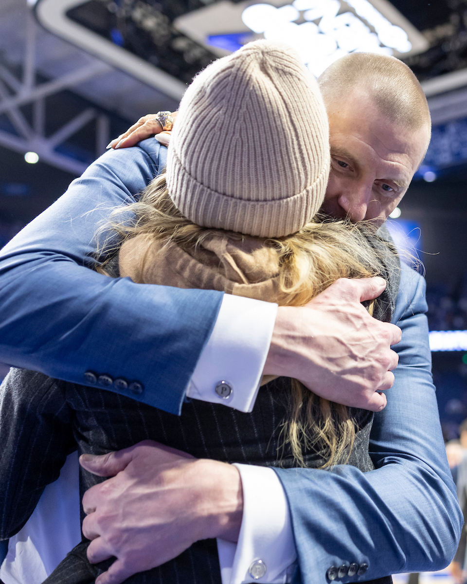 Mark Pope. Lee Anne Pope. Kentucky beat Texas 85-80. Photo by Chet White | UK Athletics