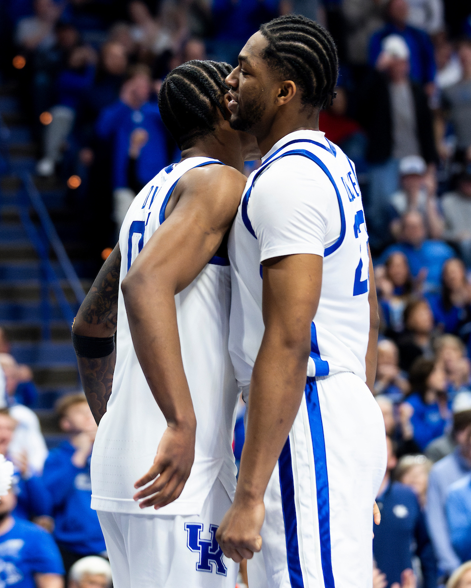 Mo Dioubate. Denzel Aberdeen. Celebration. Kentucky falls to Georgia 86-78. Photo by Eddie Justice | UK Athletics