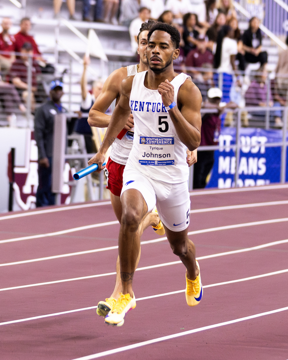 Tyrique Johnson. SEC Indoor Track and Field Championships day three. Photo by Camryn Williams | UK Athletics.