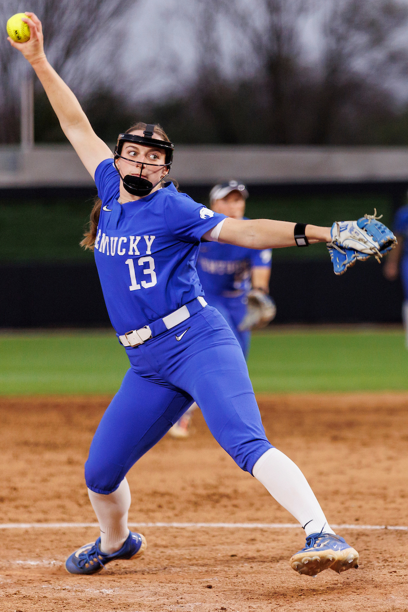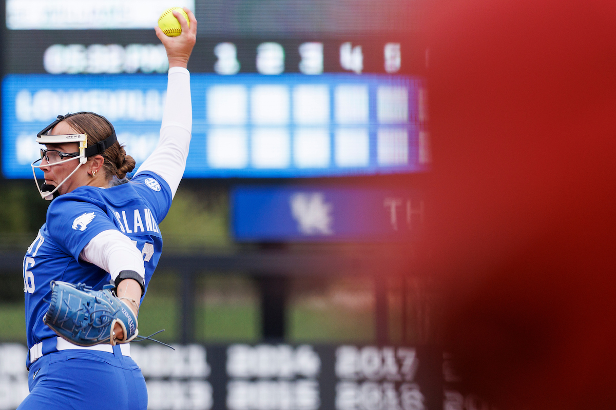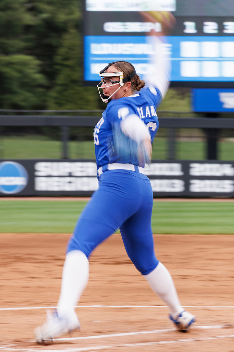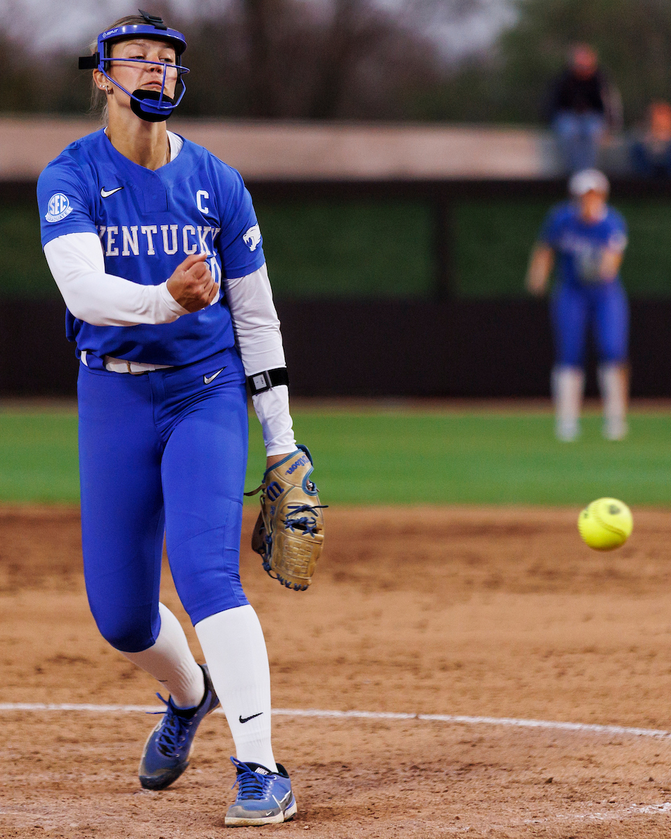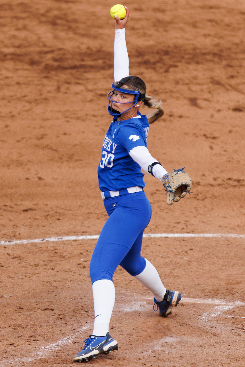Rachel Lawson. First pitch. Kentucky loses to Louisville 8-7. Elliott Hess | UK Athletics