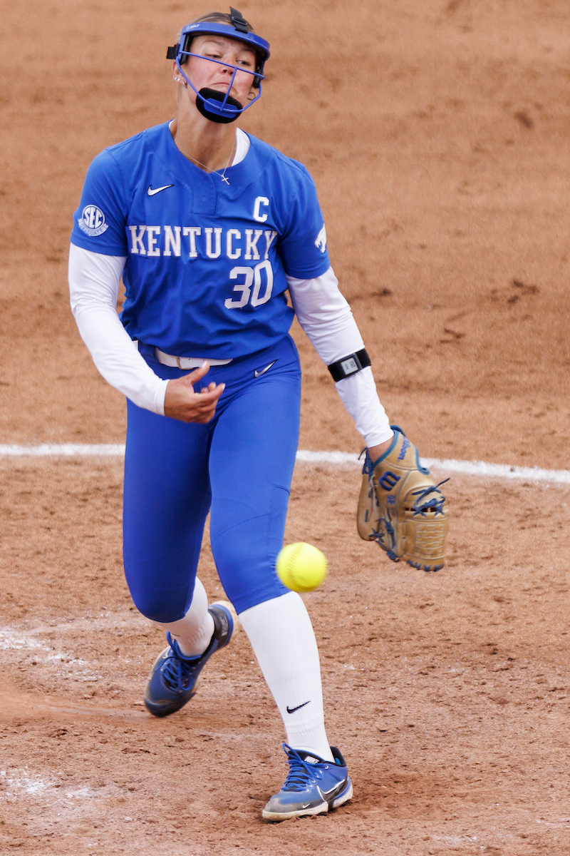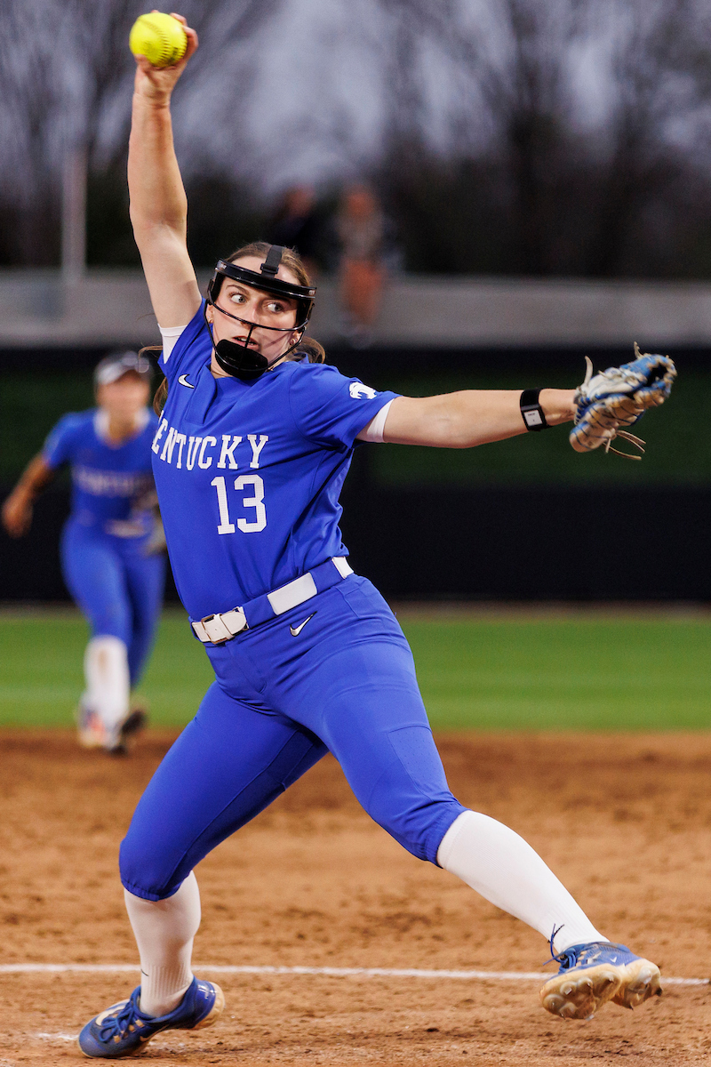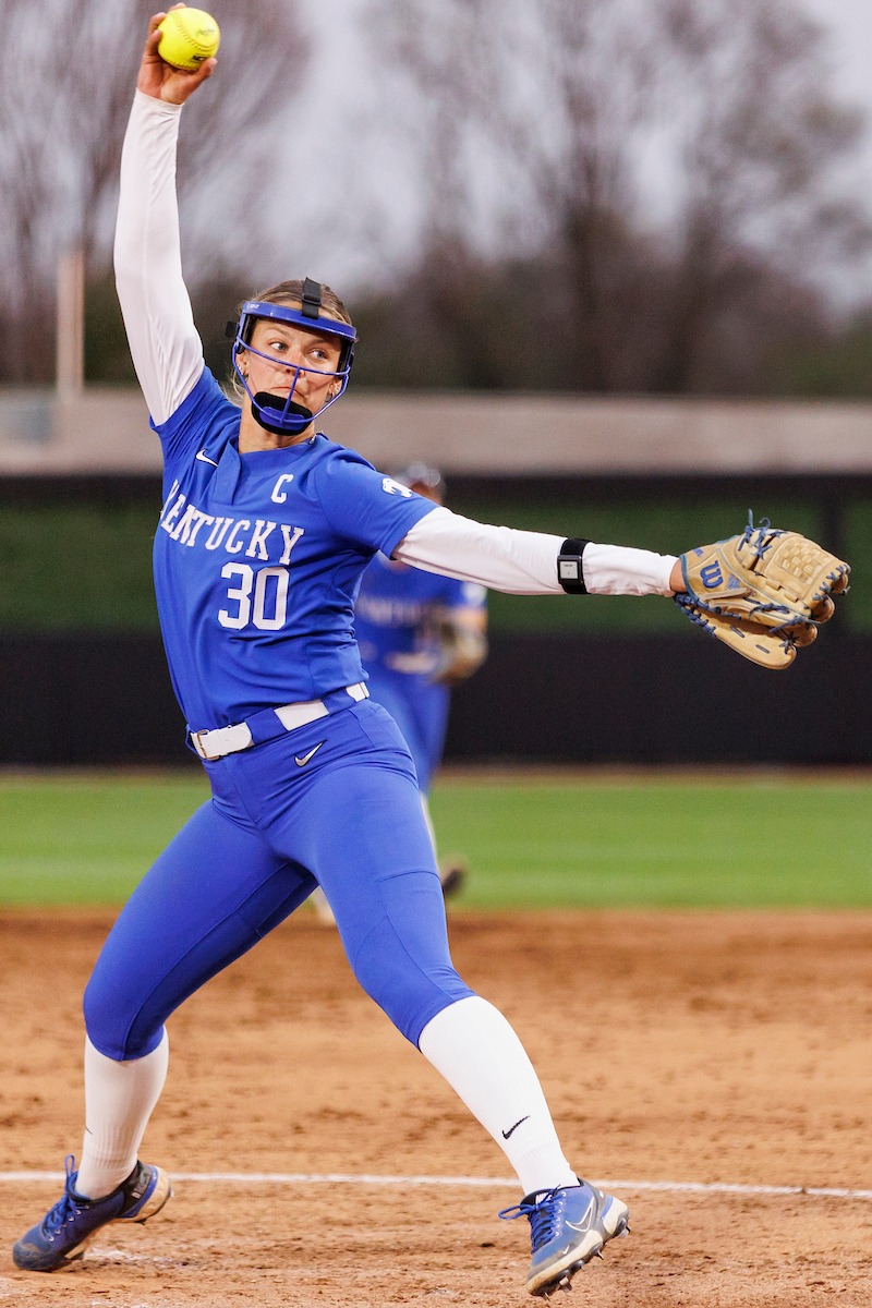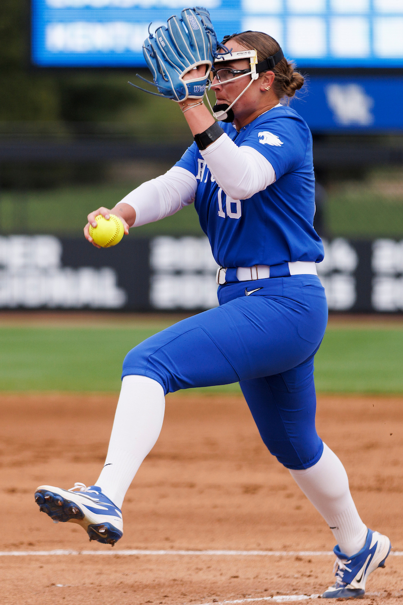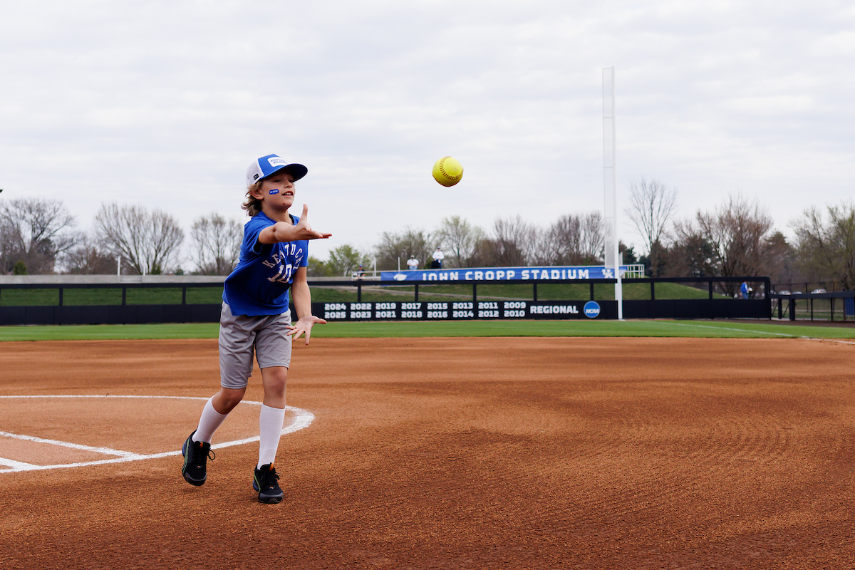 Rachel Lawson. First pitch. Kentucky loses to Louisville 8-7. Elliott Hess | UK Athletics