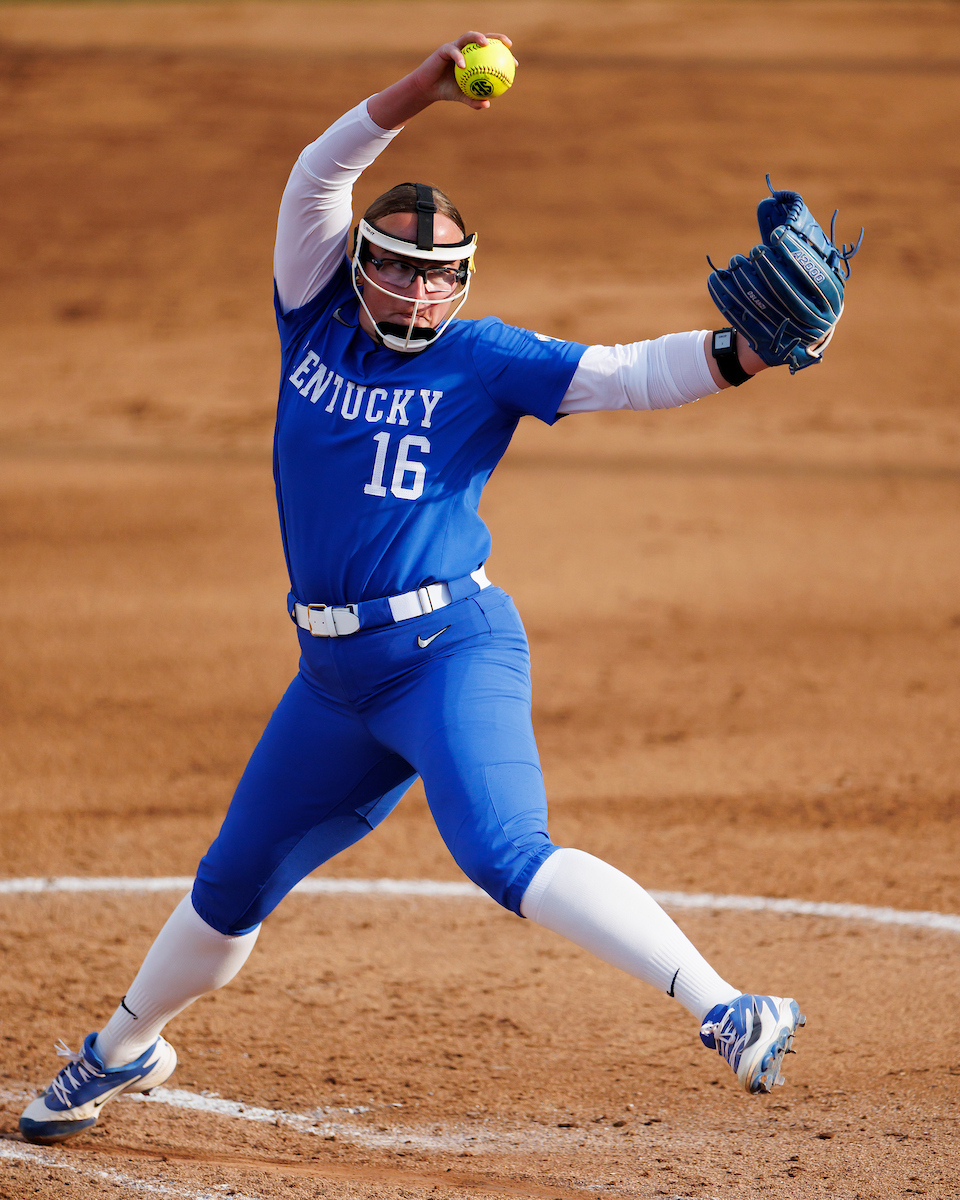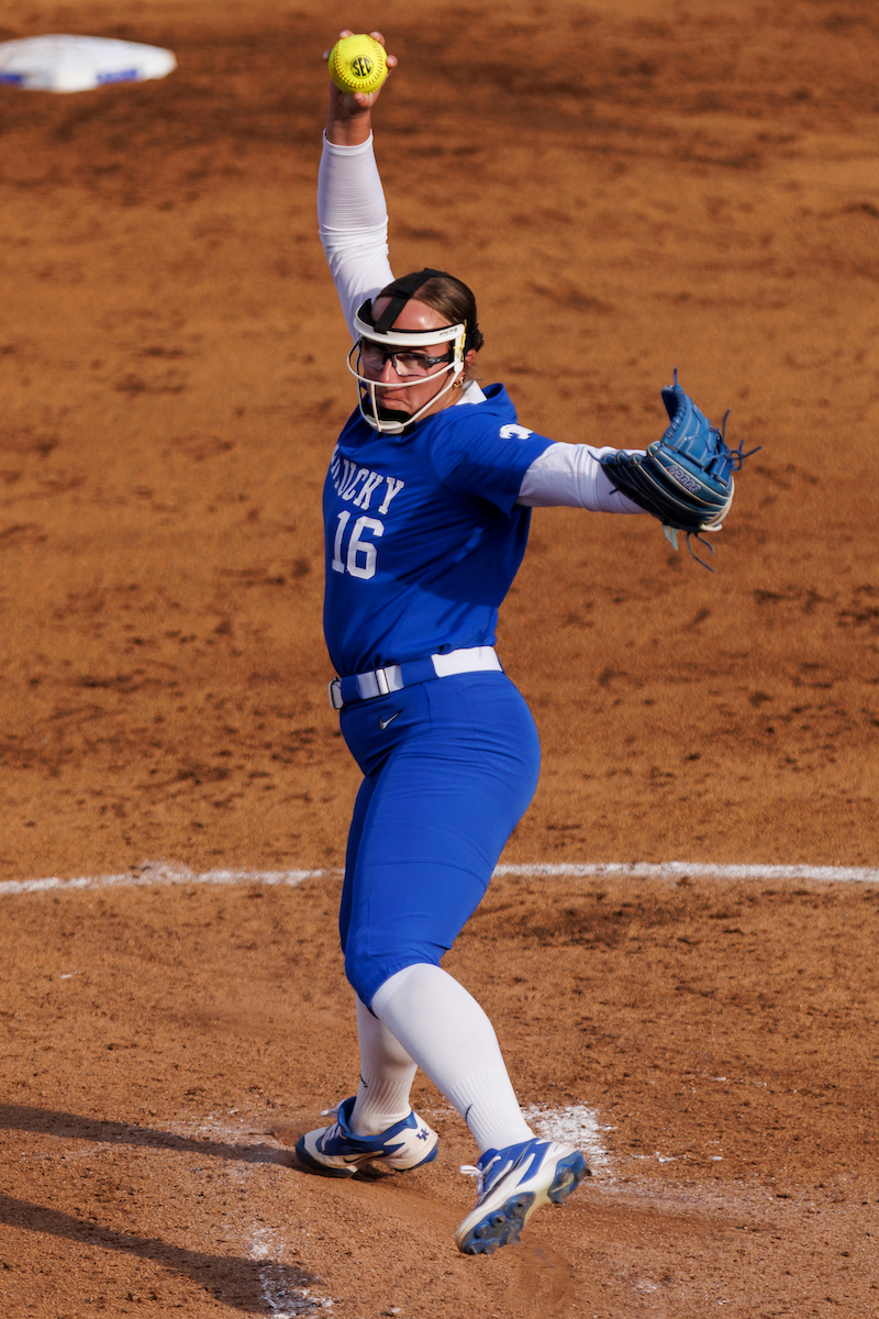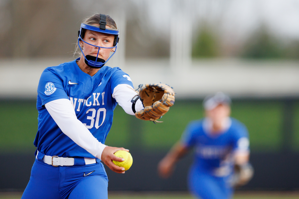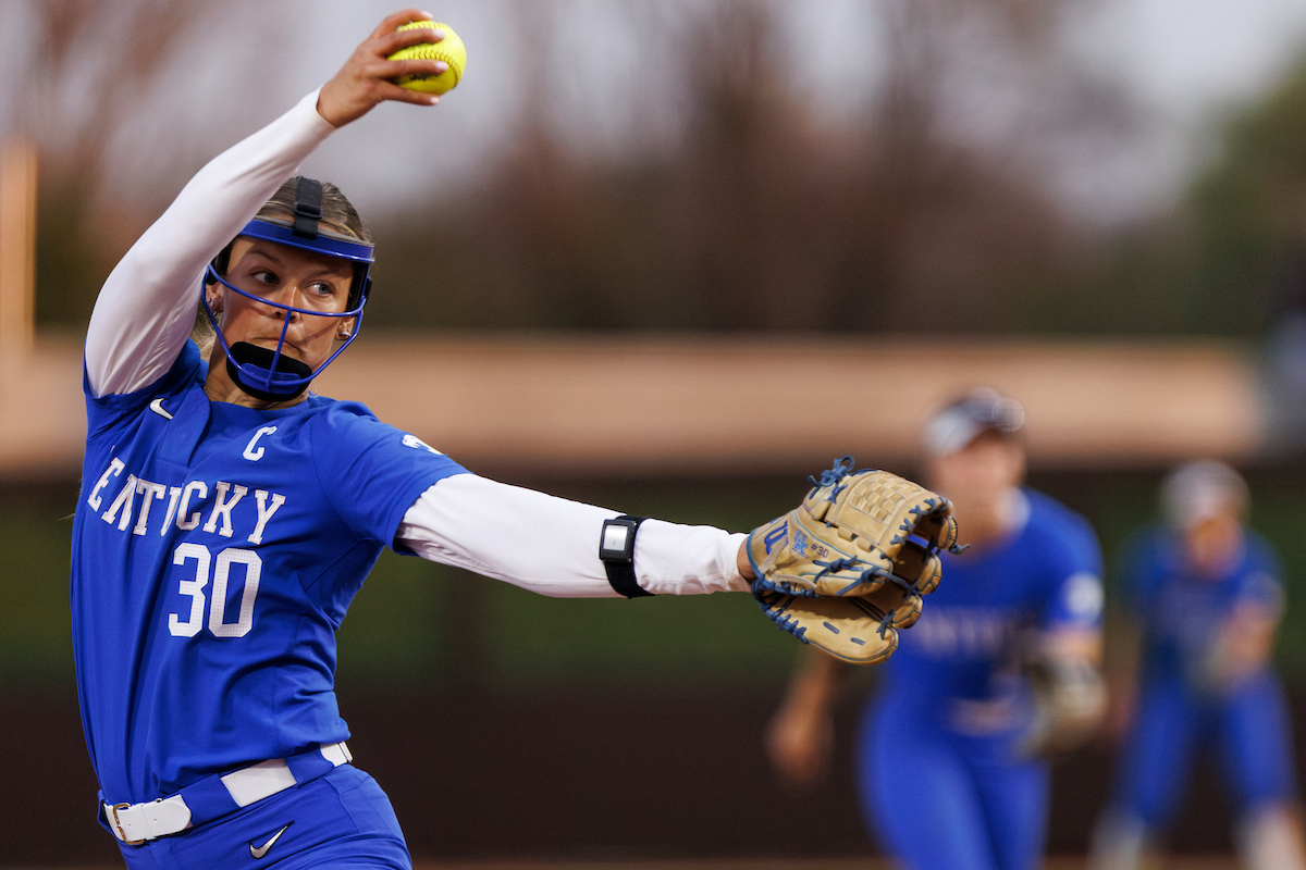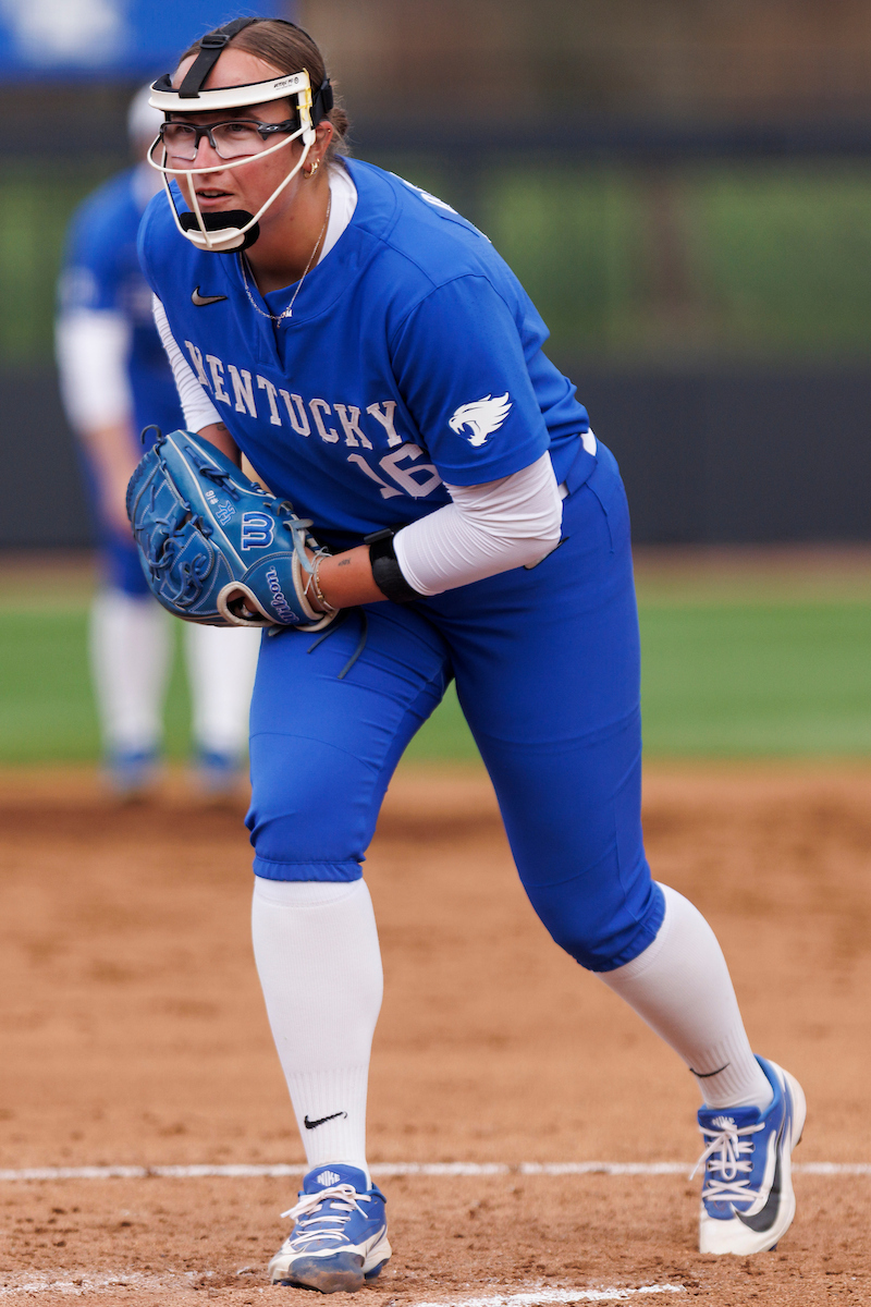 Rachel Lawson. First pitch. Kentucky loses to Louisville 8-7. Elliott Hess | UK Athletics