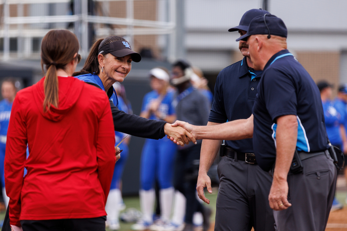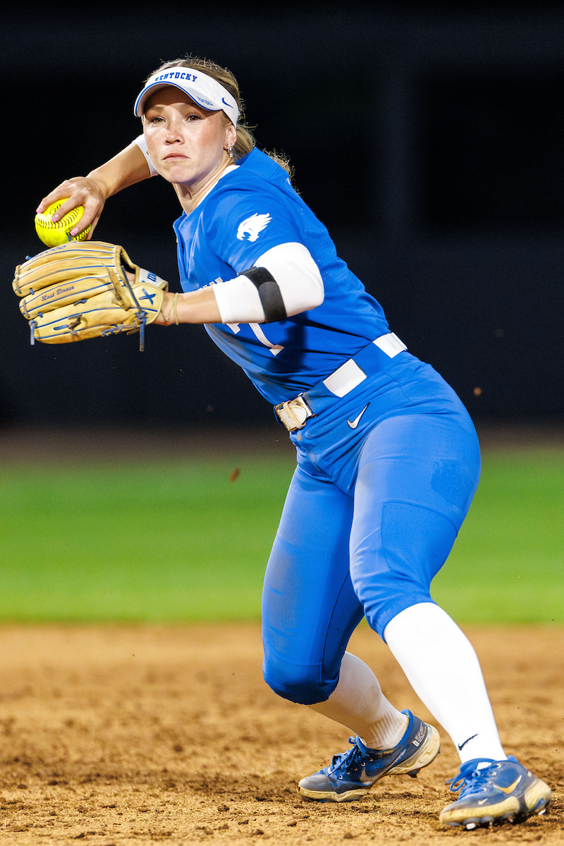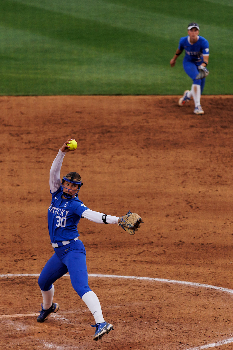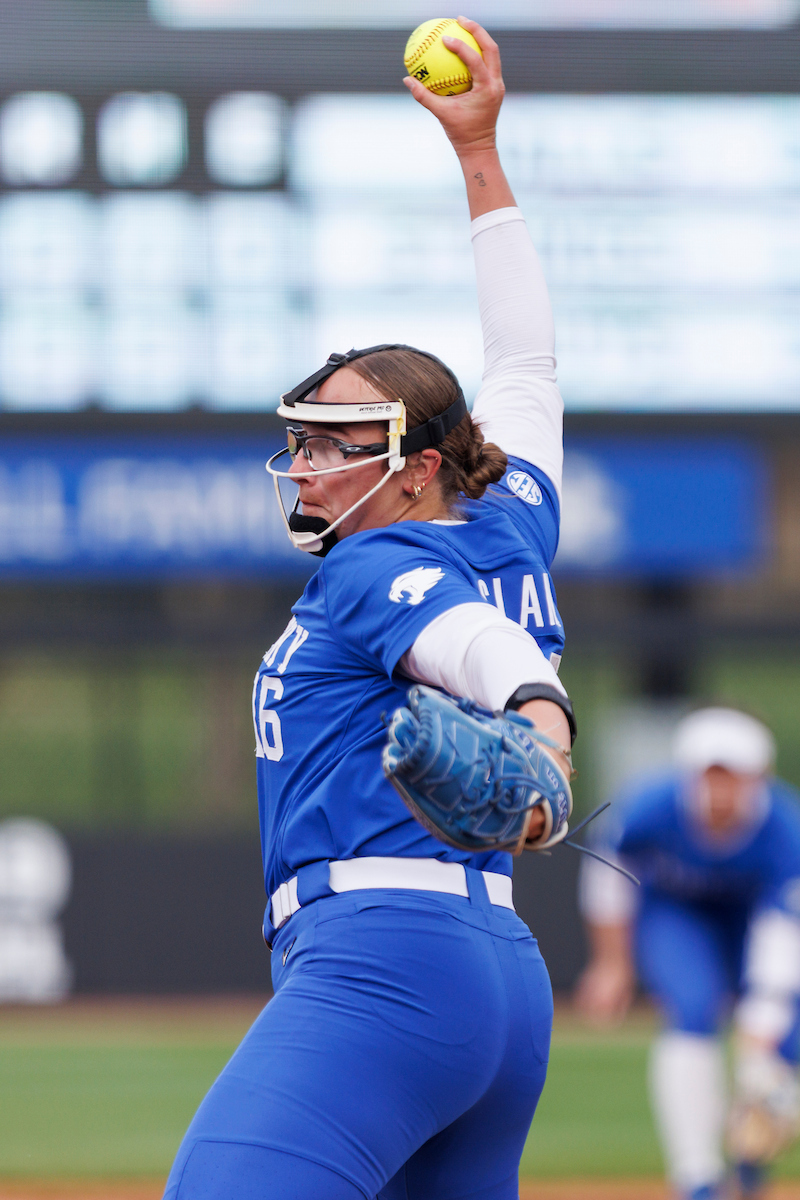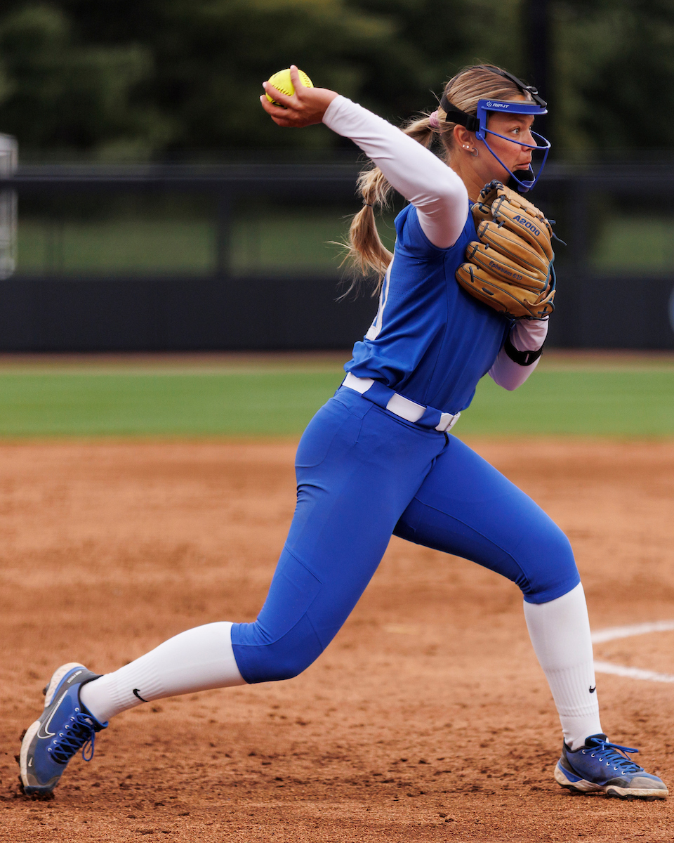 Rachel Lawson. First pitch. Kentucky loses to Louisville 8-7. Elliott Hess | UK Athletics